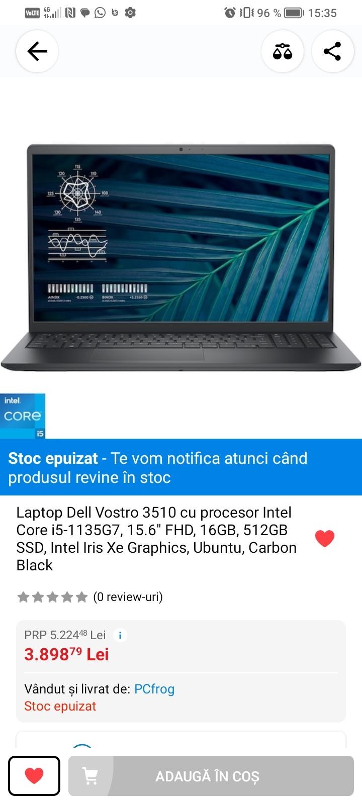 Vând Laptop Dell Vostro 3510 cu procesor Intel Core i5-1135G7, 15.6" FHD, 16GB, 512GB SSD, Intel Iris Xe Graphics, Ubuntu, Carbon Black în garanție. Îi asigur garanție pentru încă 2 ani în luna octombrie 2024. Pentru mai multe detalii va rog sa îmi scrieți în privat laptopul a fost cumpărat cu 4001 de lei