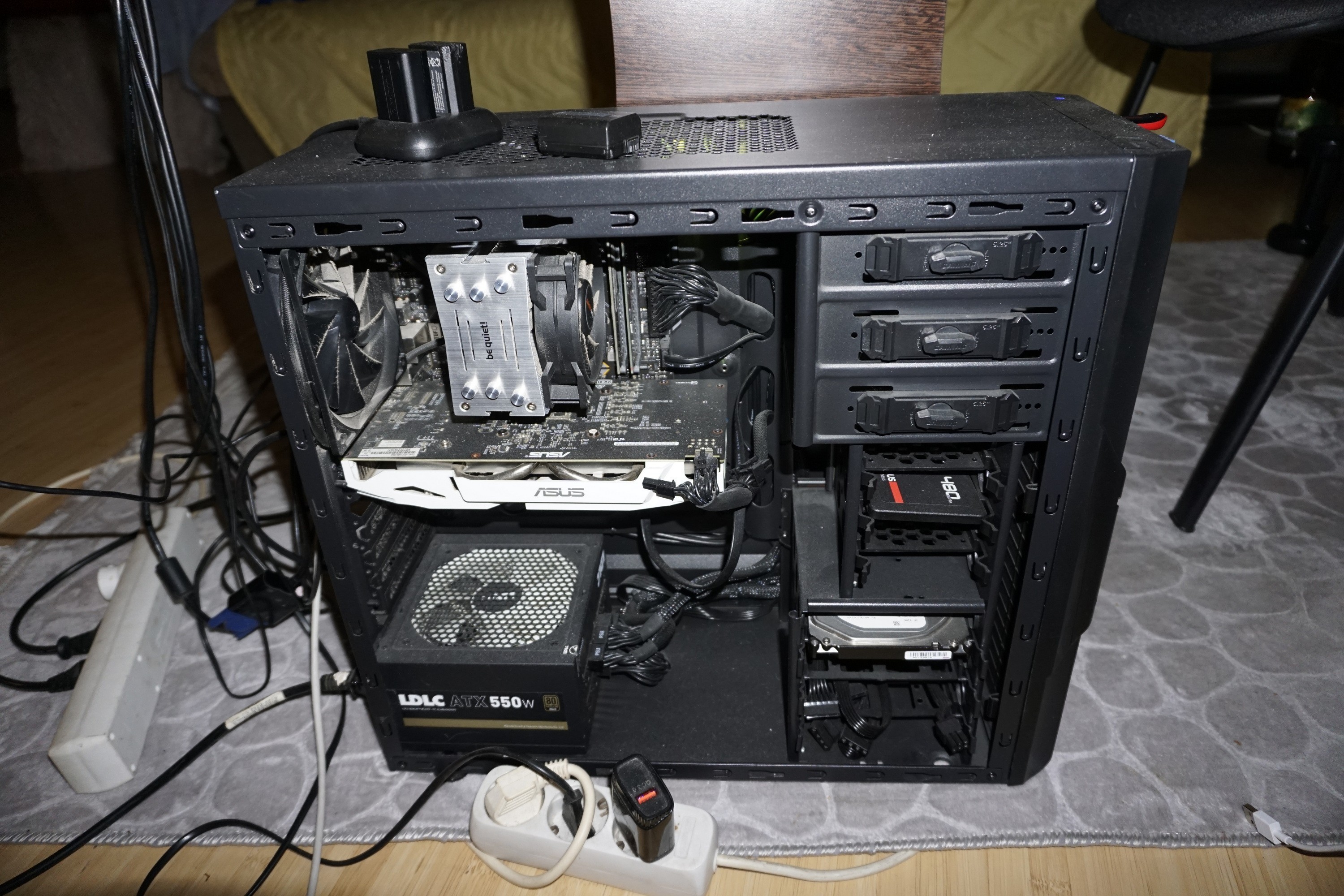 vand un pc mid tower thermaltake cu un cpu i7 8700k + cooler / ,placa gtx 1060 6gb oc / 16 gb ram / ssd nvme 250gb placa de baza asus tuf gaming. psu modular si un hdd 2tb