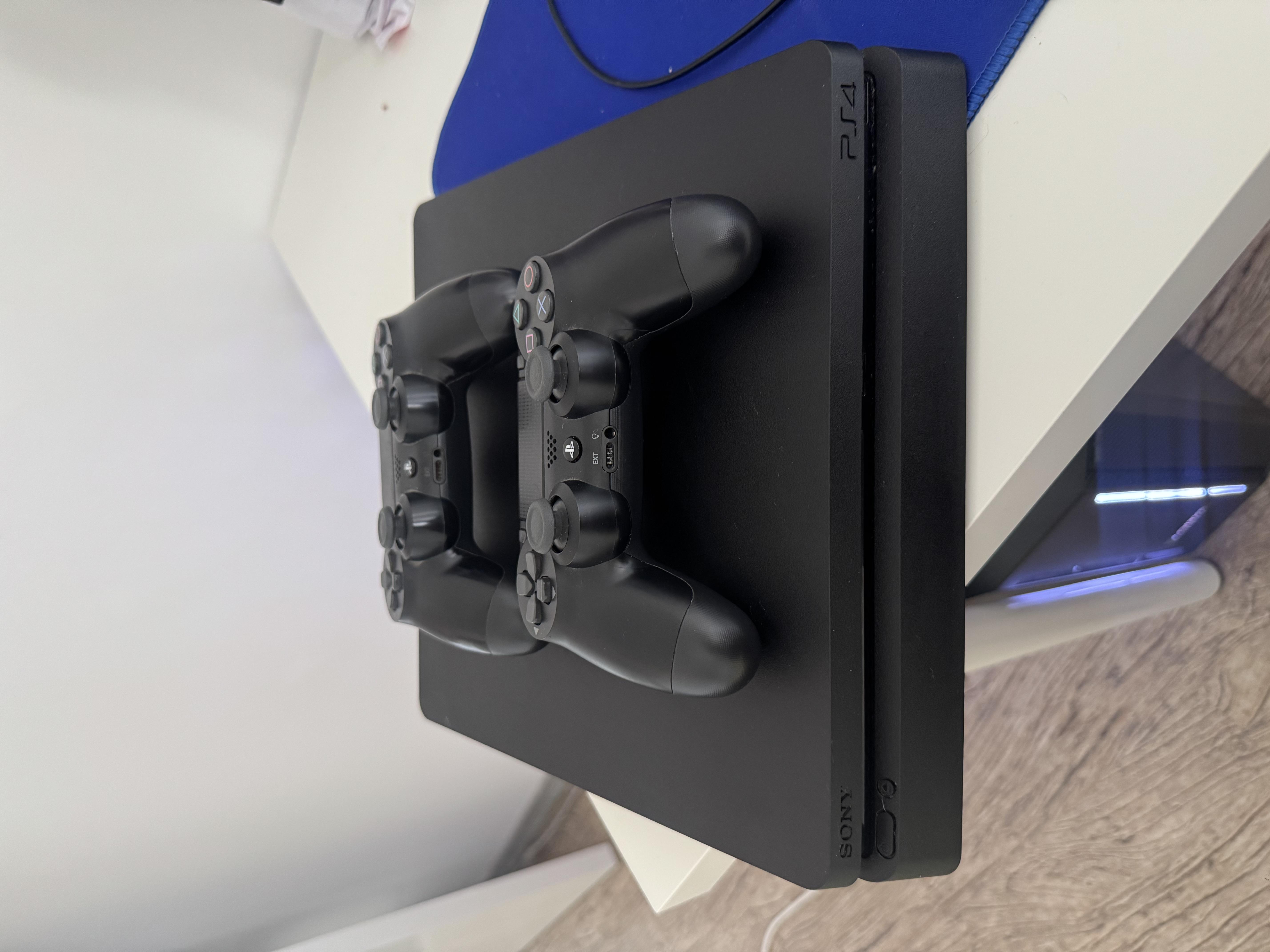 PS4 Slim 500gb in stare foarte buna,2 controllere si 2 jocuri. Ps4 personal,doresc sa l vand pentru ca mi am achizitionat un Pc. Doar Bucuresti!