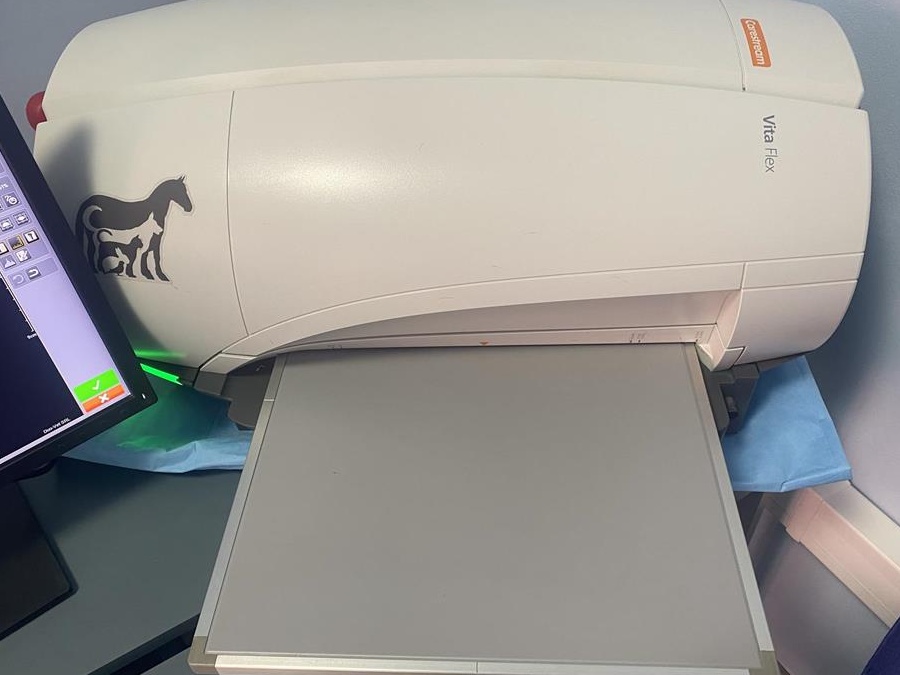 De vanzare sistem de radiologie veterinara computerizata CR Vita Flex Carestream, complet funcțional, soft veterinar cu licența, toate accesoriile stație de lucru,monitor, 2 casete 18/24 și o caseta 24/30, posibilitate de procesare 30-40 filme /ora, se poate vedea și testa!