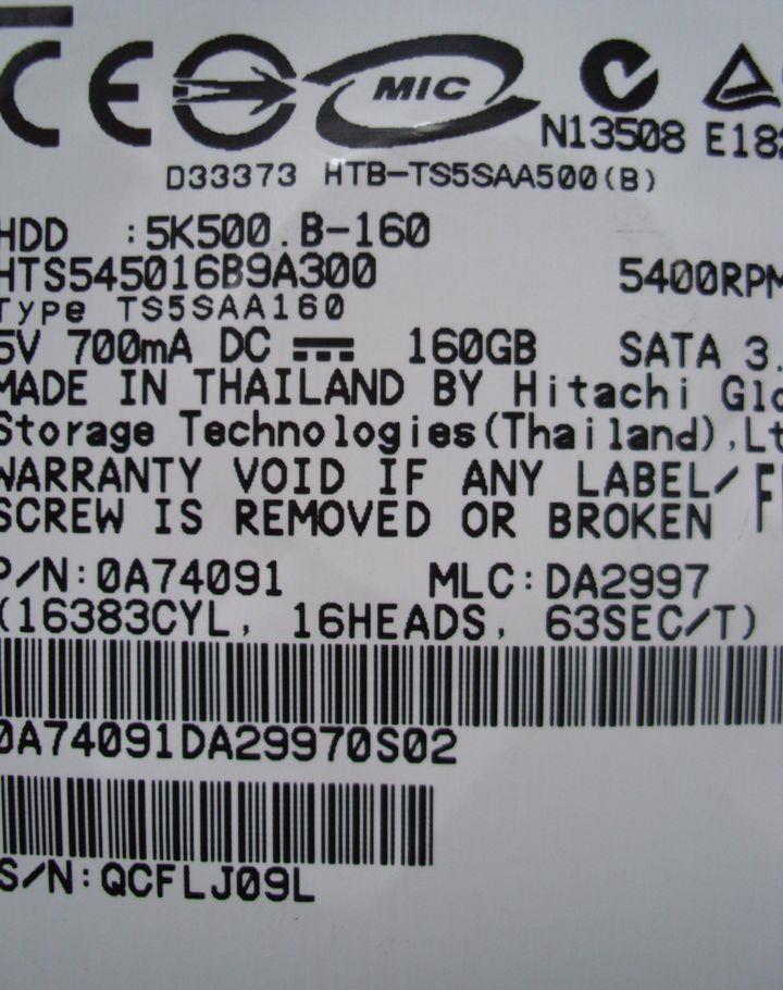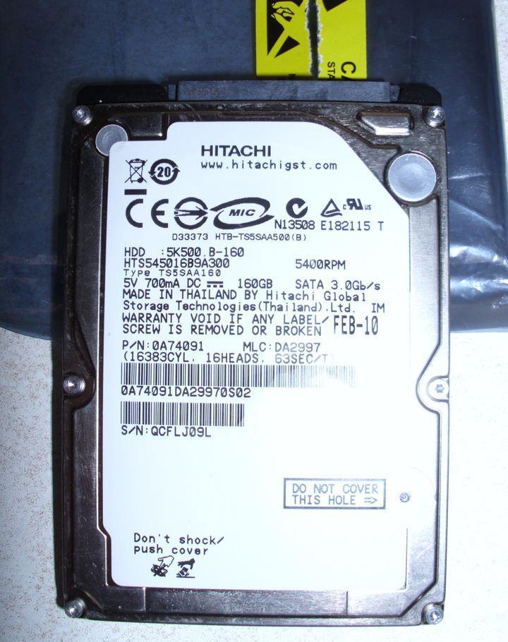 General Capacity 160 GB Interface SATA 3Gb/s Buffer Size 8 MB Manufacturer FujitsuInterface Provided Qty 1 Connector Type 7 pin Serial ATA Storage Interface Serial ATA-300 Interface Serial ATA-300Hard Drive Form Factor 2.5" Interface Type Serial ATA-300 Spindle Speed 5400 rpm Hard Drive Type internal hard drive Form Factor (Short) 2.5" Form Factor (metric) 6.4 cm Form Factor (Short) (metric) 6.4 cm Storage Interface Serial ATA-300 Interface Serial ATA-300 Buffer Size 8 MBExpansion & Connectivity Interfaces 1 x SATA 3 Gb/s - 7 pin Serial ATAPerformance Spindle Speed 5400 rpmStorage Controller (2nd) Type noneHeader Brand Hitachi Product Line Hitachi Travelstar Model 5K500.B Packaged Quantity 1 Compatibility PCBay Required Type internal Form Factor 2.5" Form Factor (metric) 6.4 cm Total Qty 1General Manufacturer Fujitsu