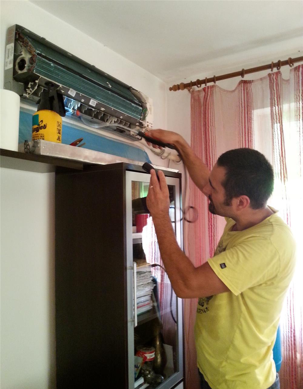 Frigotehnist George, 07-27-73-03-66 orele 10-20 de luni, inclusiv sambata. Reparatii si intretinere in Timisoara, servicii rapide si de calitate pentru aparatele de aer conditionat, electrocasnice.- Igenizare, degresare, dezinfectare antibacteriana, spalare vaporizator, condensator, ventilator, filtre, site, carcase si componentele aferente cu soluti ecologice, degresante, cu puternic efect antibacterian.Igenizare cu dezinfectanti care inlatura murdaria (praf, nicotina, grasime), bacterii, virusuri, mucegaiuri si mirosurile neplacute.Recomandam igenizare si curatire, odata pe an, sau de cate ori este necesar, pentru ca aparatul sa functioneze in parametri normali si fara a ne afecta sanatatea.- Desfundare curatire, sau inlocuire tub drenaj (condens) pentru a evita formarea picaturilor de condens din unitatea interioara in locuinta.- Incarcari cu freon, incarcare cu agent frigorificFreon R22.Freon R407C.Freon R410A.Freon R32.Verificare parametri compresor, presiune si temperatura instalatie.Oferim promptitudine calitate si seriozitate.