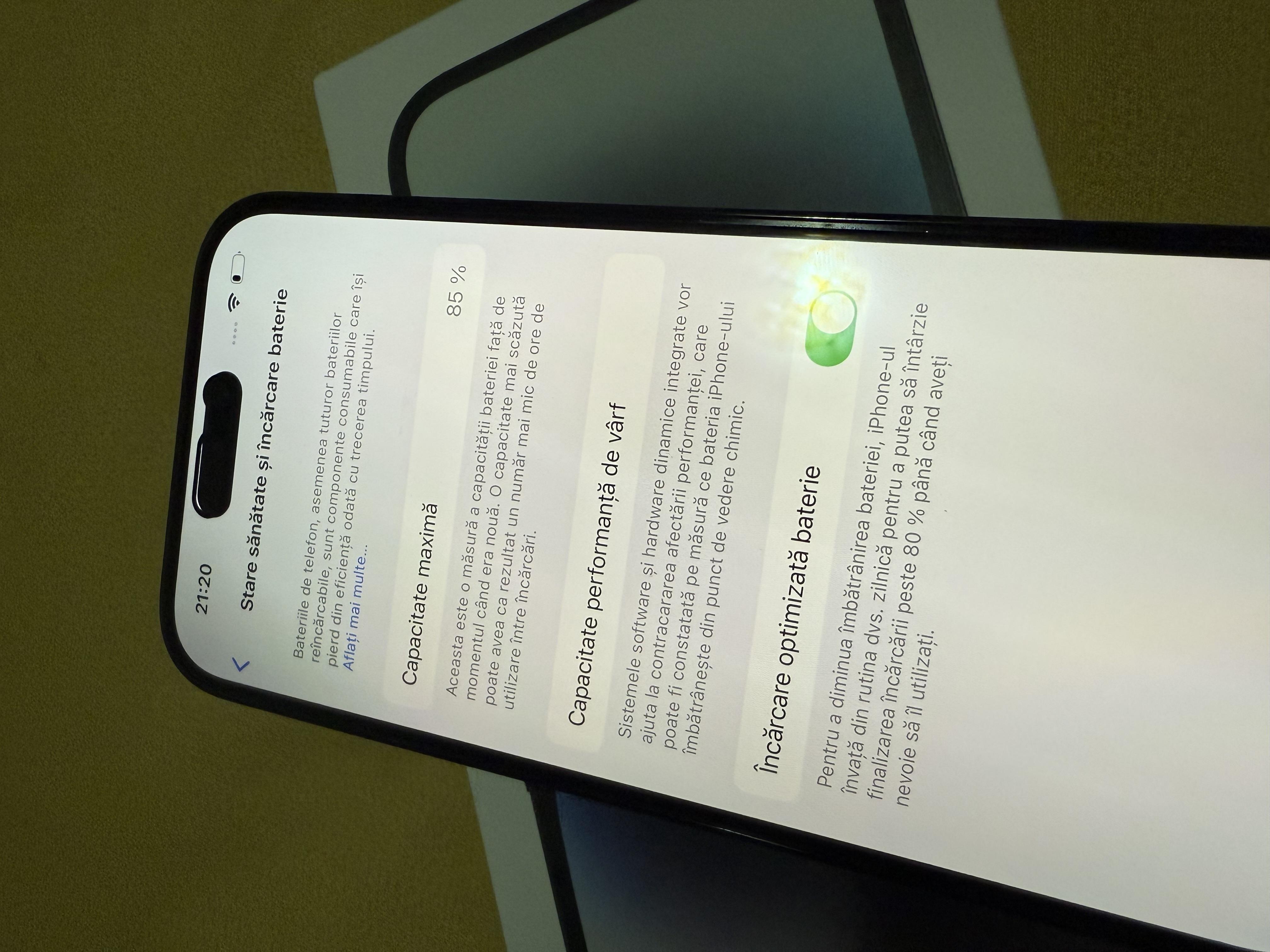 Vând iPhone 14 Pro,128 g ,bateria 85%,aspect impecabil,funcționează perfect ținut în permanență cu folie și husă îl vând pt ca am trecut la un alt model pt mai multe detalii vă stau la dispoziție 0768879074 mirela multumesc (prețul este ușor negociabil)
