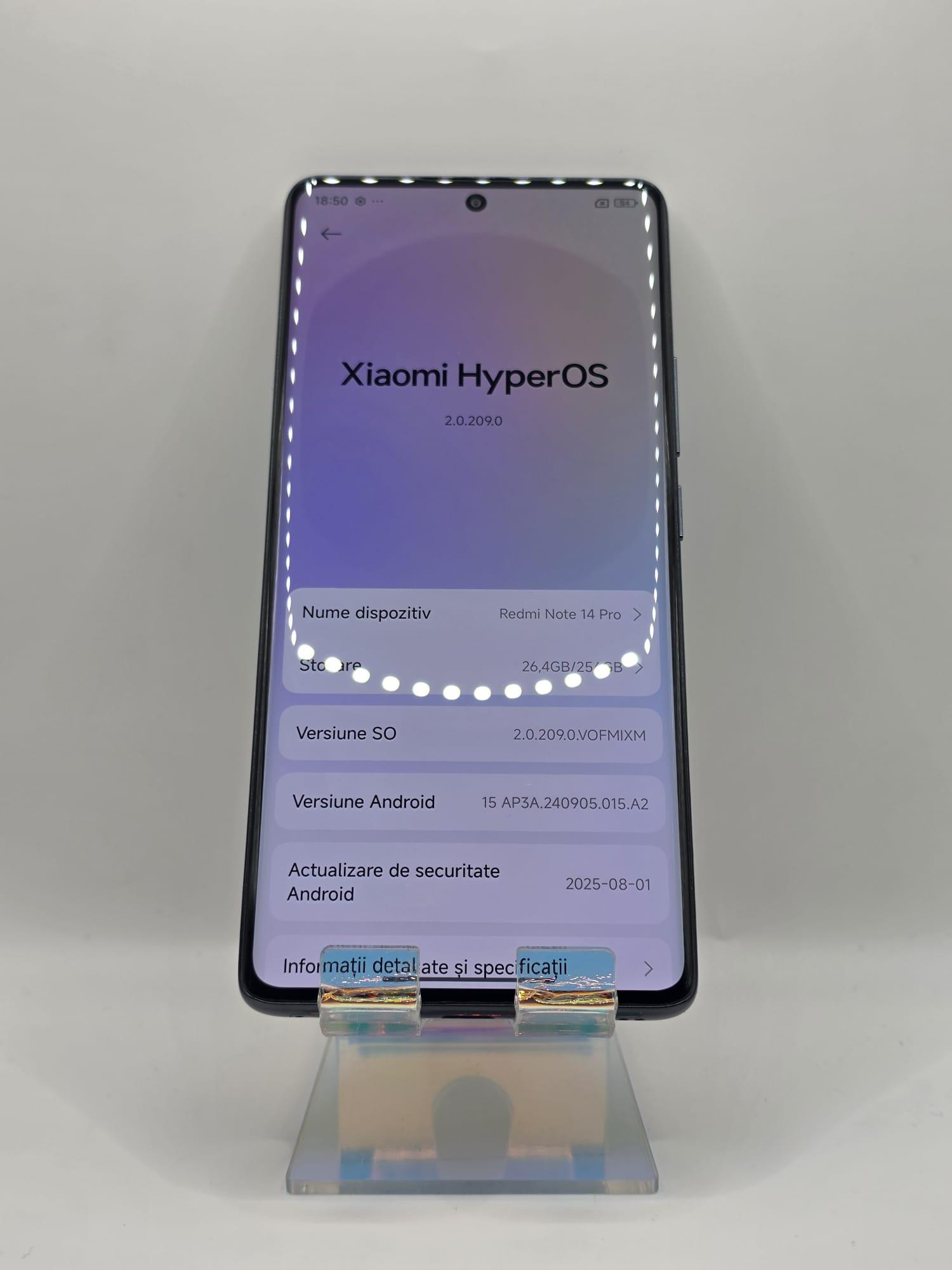 Redmi Note 14 Pro, MEM 256GB, RAM 8GB, Midnight Black, Amanet Doamna Ghica, Cod: 89994