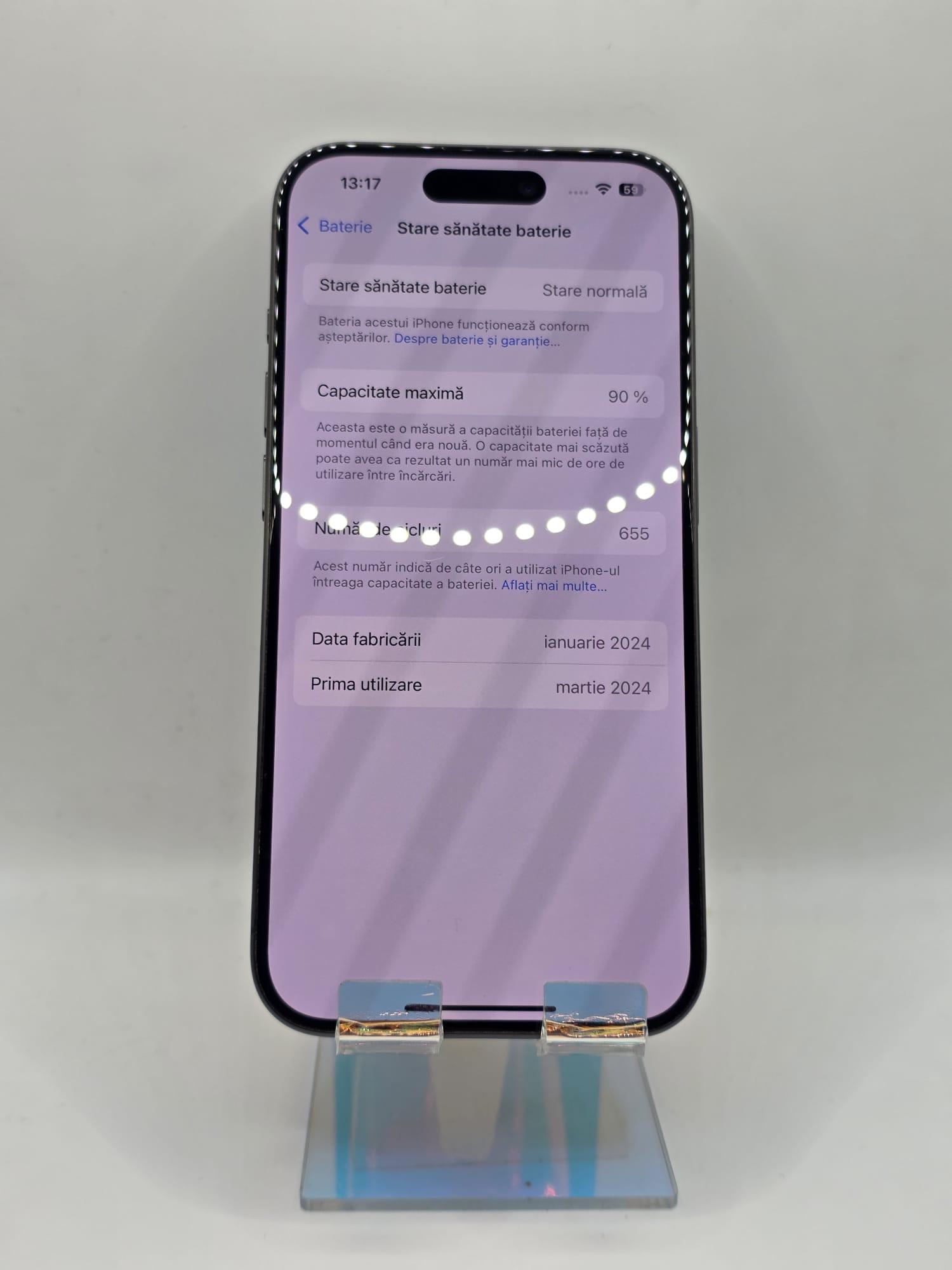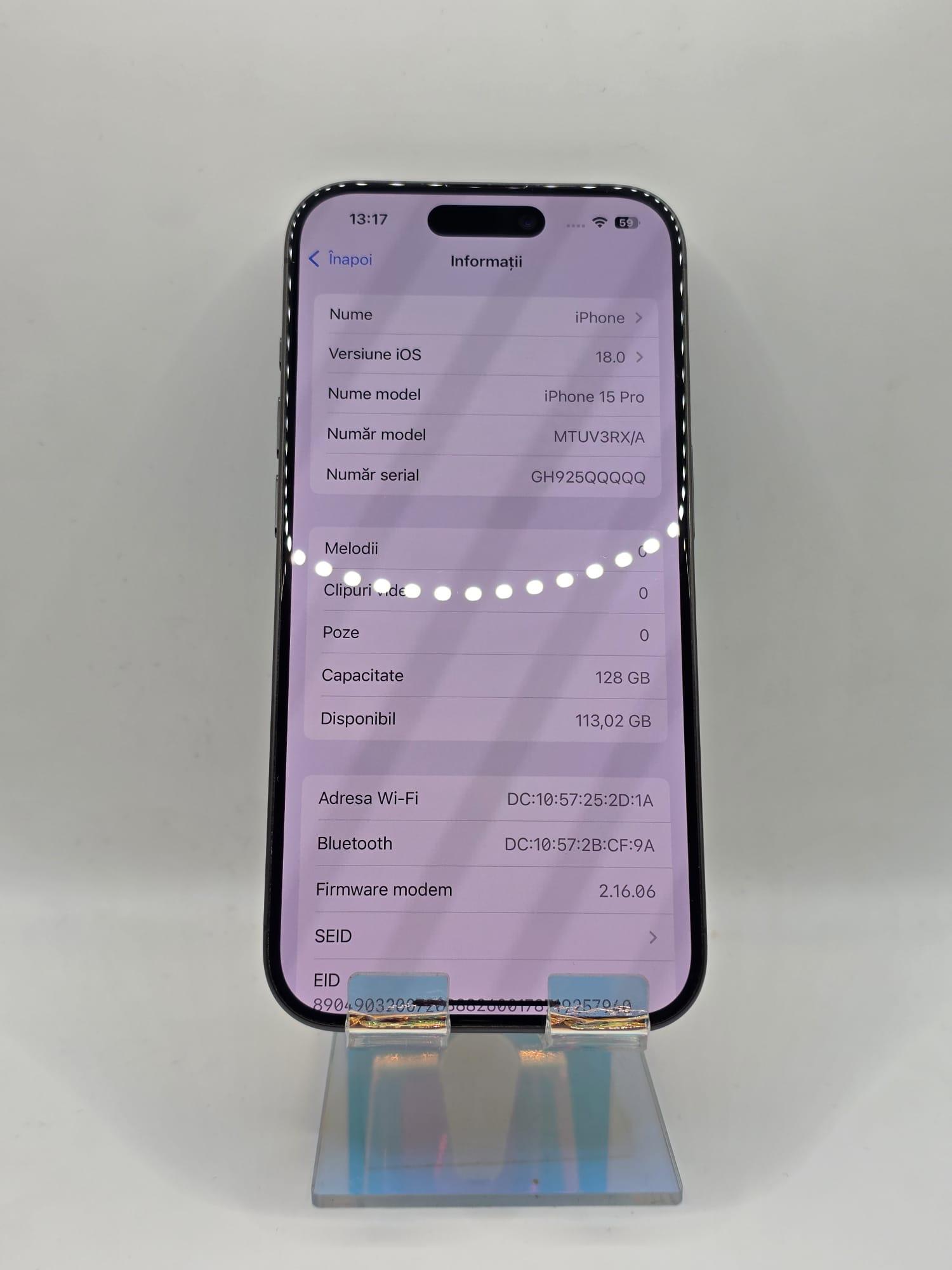 Iphone 15 Pro, MEM 128GB, RAM 8GB, Natural Titanium, Amanet Doamna Ghica, Cod: 91886