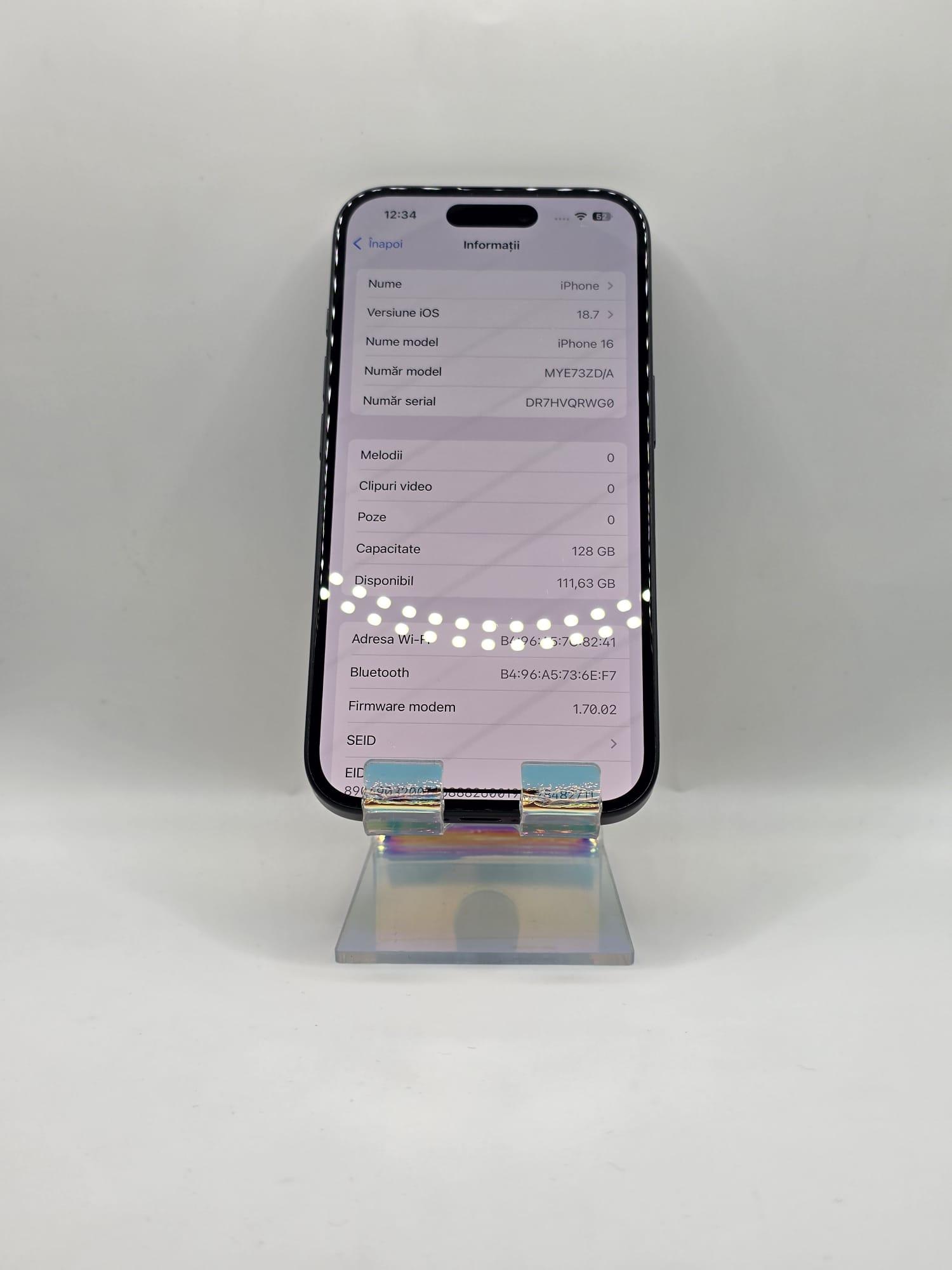Iphone 16, MEM 128GB, RAM 8GB, Black, Amanet Doamna Ghica, Cod: 95095