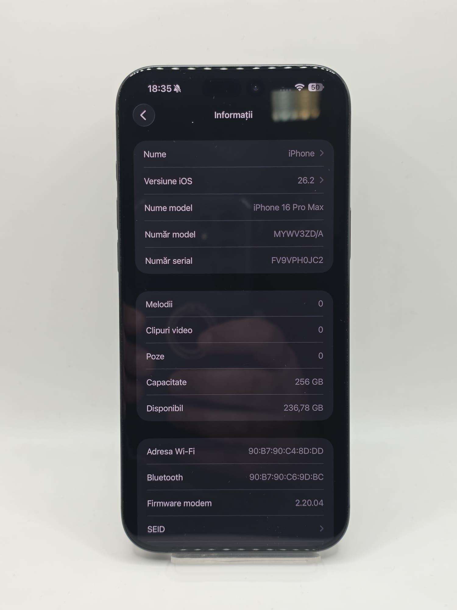 Iphone 16 Pro Max, MEM 256GB, RAM 8 GB, Black Titanium, Amanet Doamna Ghica, Cod: 91881