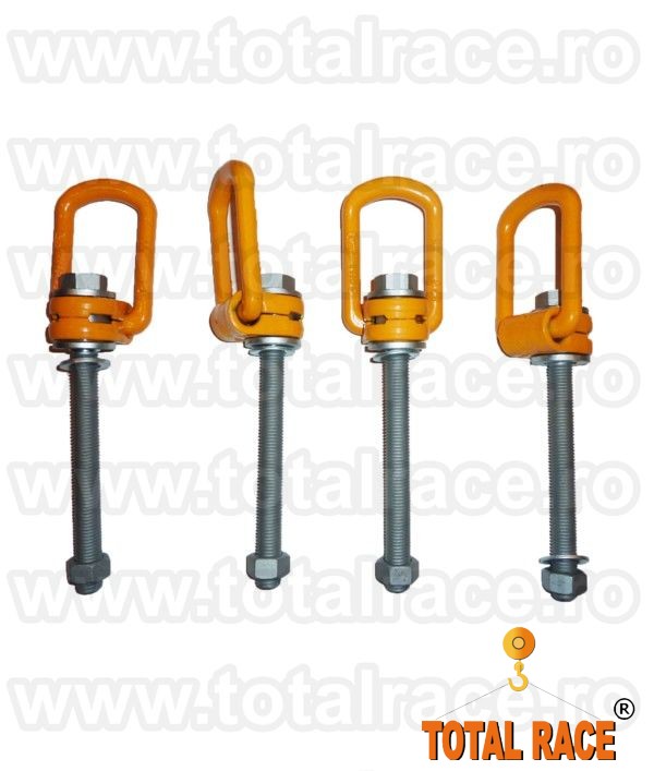 Total Race Romania livreaza din stoc puncte ridicare flexibile cu tija lunga si piulita , inele ridicare cu tija filetata lunga, inele flexibile ridicare cu tija cu dimensiuni intre 76 mm – 295 mm, ocheti ridicare cu tija lunga si piulita , inele ridicare rotative cu articulatie, inele pivotante, inele ridicare cu surub tija lunga si piulita, ocheti ridicare cu surub M8–M48 capacitati intre 0,3-20 tone , ocheti ridicare rotativi, surub rotativ capacitati mari , inele surub rotativ matrite , ocheti ridicare flexibili.