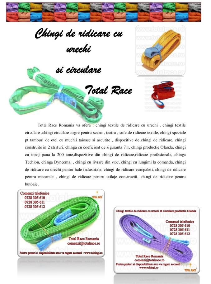 Total Race Romania va livreaza rapid din stoc: sufe textile de ridicare cu lungimi mici , chingi de ridicare, chingi textile din poliester, chingi cu urechi,chingi plate, chingi rotunde, chingi circulare, chingi productie Olanda,sufe textile de ridicare, sufe macara, sufe poliester, echipamente ridicare.