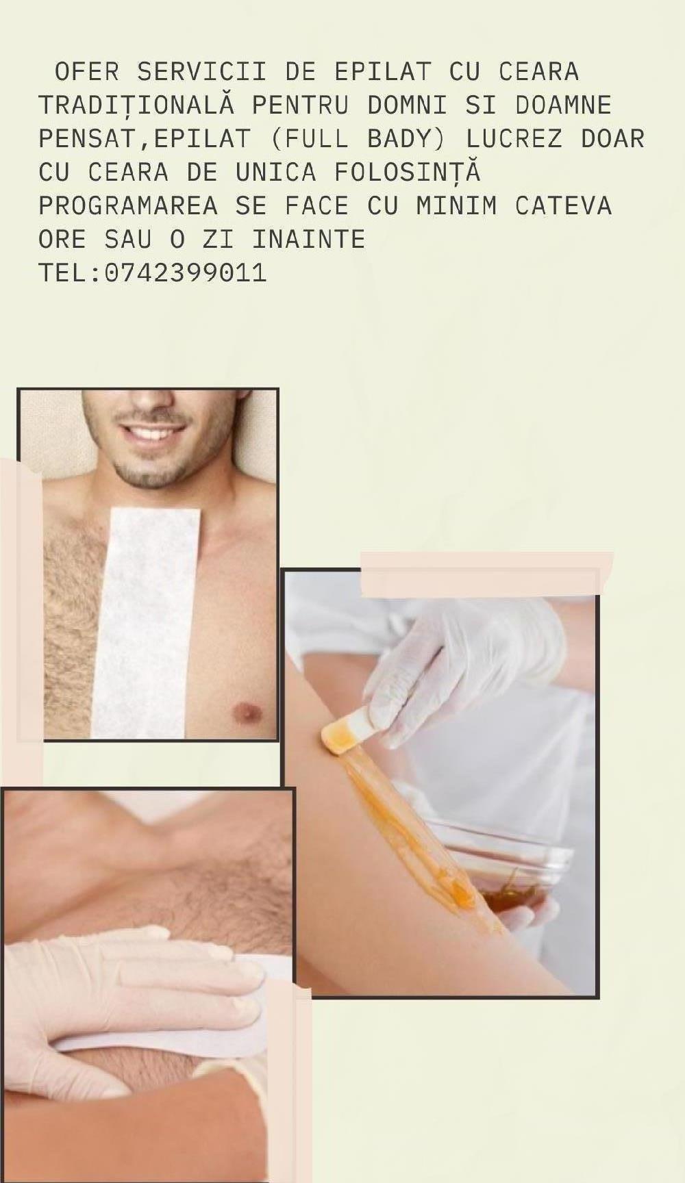 Epilare domni & doamne cu ceară tradițională de unică folosință .Servici de cosmetică clasică: epilat ,pensat ,vopsit gene & sprâncene, masaj facial si curățare facială .Pentru programarii sa sunati la