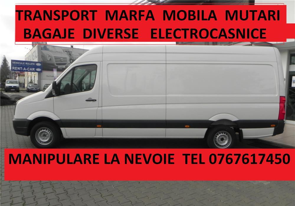 0767 617 450 Mutari mobila , apartamente , electronice ,bagaje , electrocasnice , diverse lucruri si obiecte , materiale constructii si moloz in saci ,debarasari, asigur si manipulare la nevoie contra cost, cu microbuz voluminos , non-stop , preturi fara concurenta, sunati cu incredere practic transportam orice, oriunde ,oricand pentru oricine inclusiv sambata si duminica.Persoana fizica, ieftin si sigur! Tel 0767617450 Publi24_16475788 07xx xxx xxx Arata telefon
