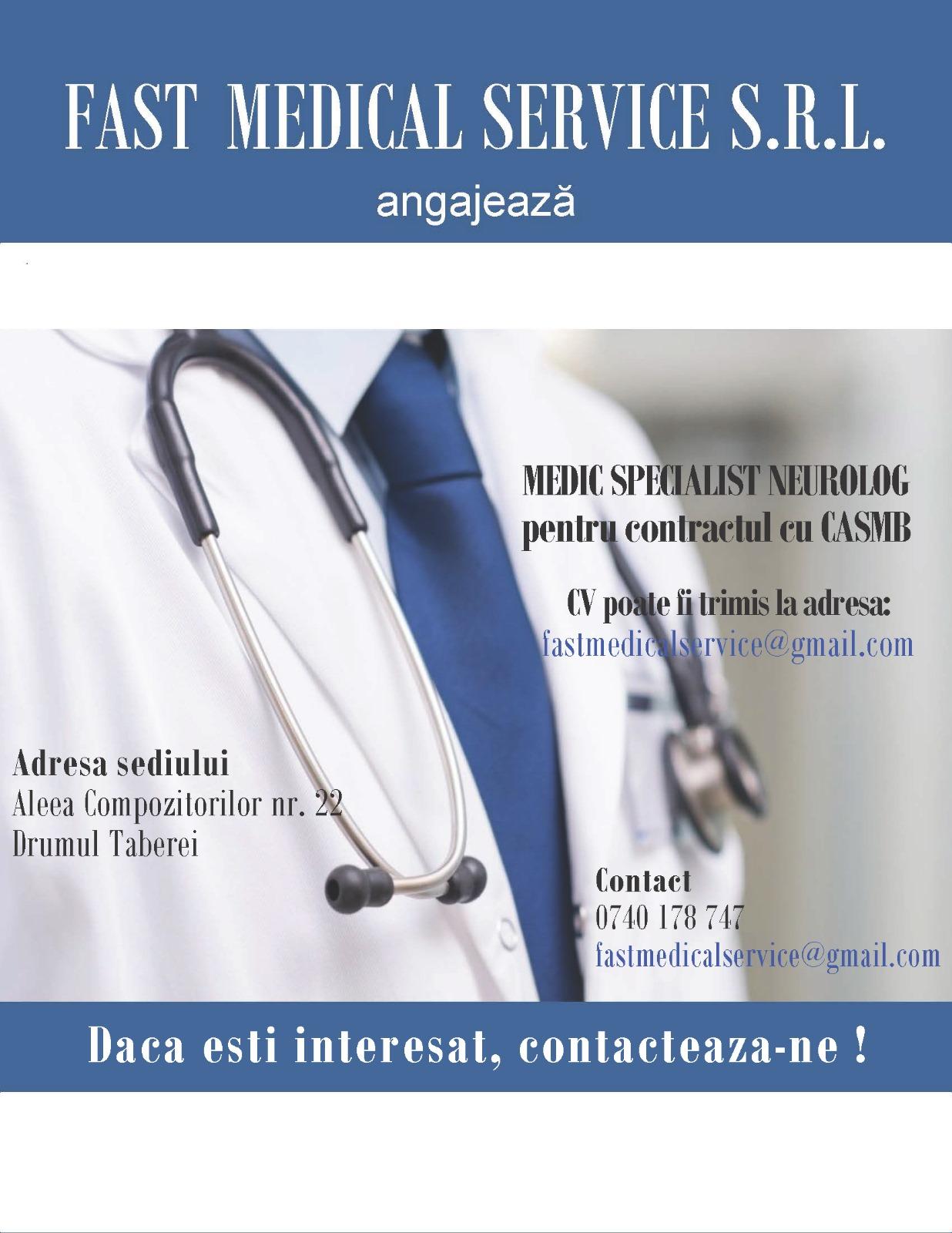 Clinica medicală cu sediul în București, sector 6, angajează medic neurolog pentru contractul cu CASMB.