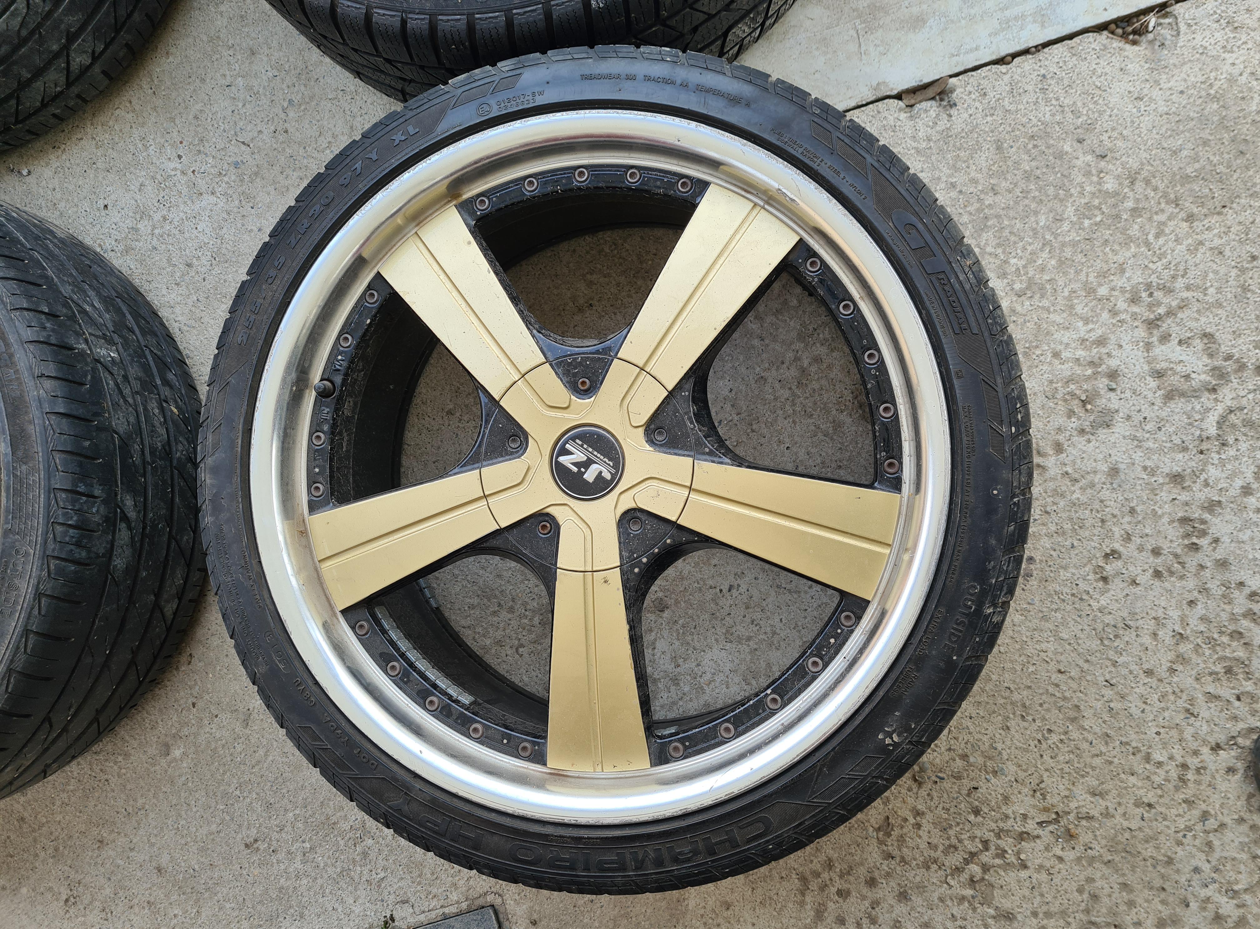 Vand 4 jante aliaj in 5 prezoane, R20 + anvelope continental 255/35/R20, dot 2015, folosite 1 an pe KIA Sportage 2012. Rotile se potrivesc si pe alte masini. Detalii la telefon