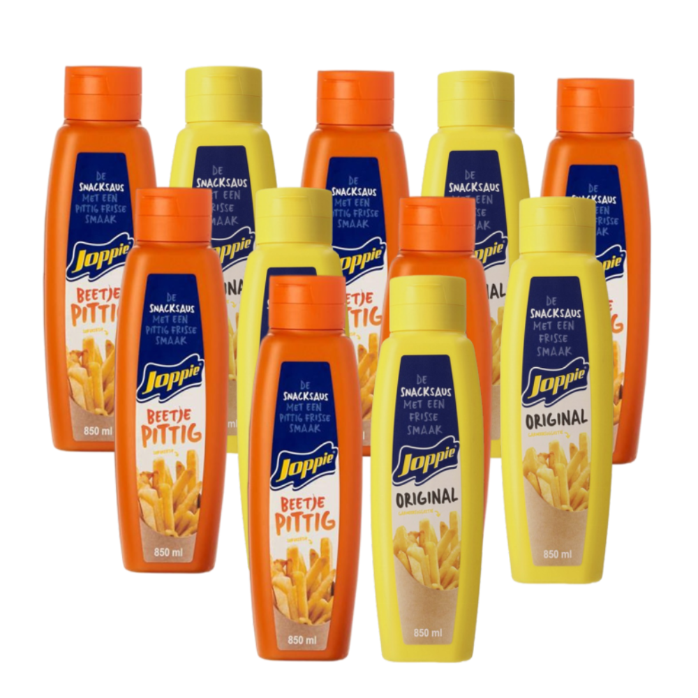 Total Blue livreaza din stoc sos Joppie usor picant 850 ml, import Olanda. Import Olanda, Joppie este un sos de gustari rece, picant, care este proaspat preparat folosind doar cele mai bune ingrediente. Pregatit cu ceapa, maioneza si cele mai gustoase condimente, cat si cu un pic de ardei, sosul Joppie creaza acel gust deosebit.