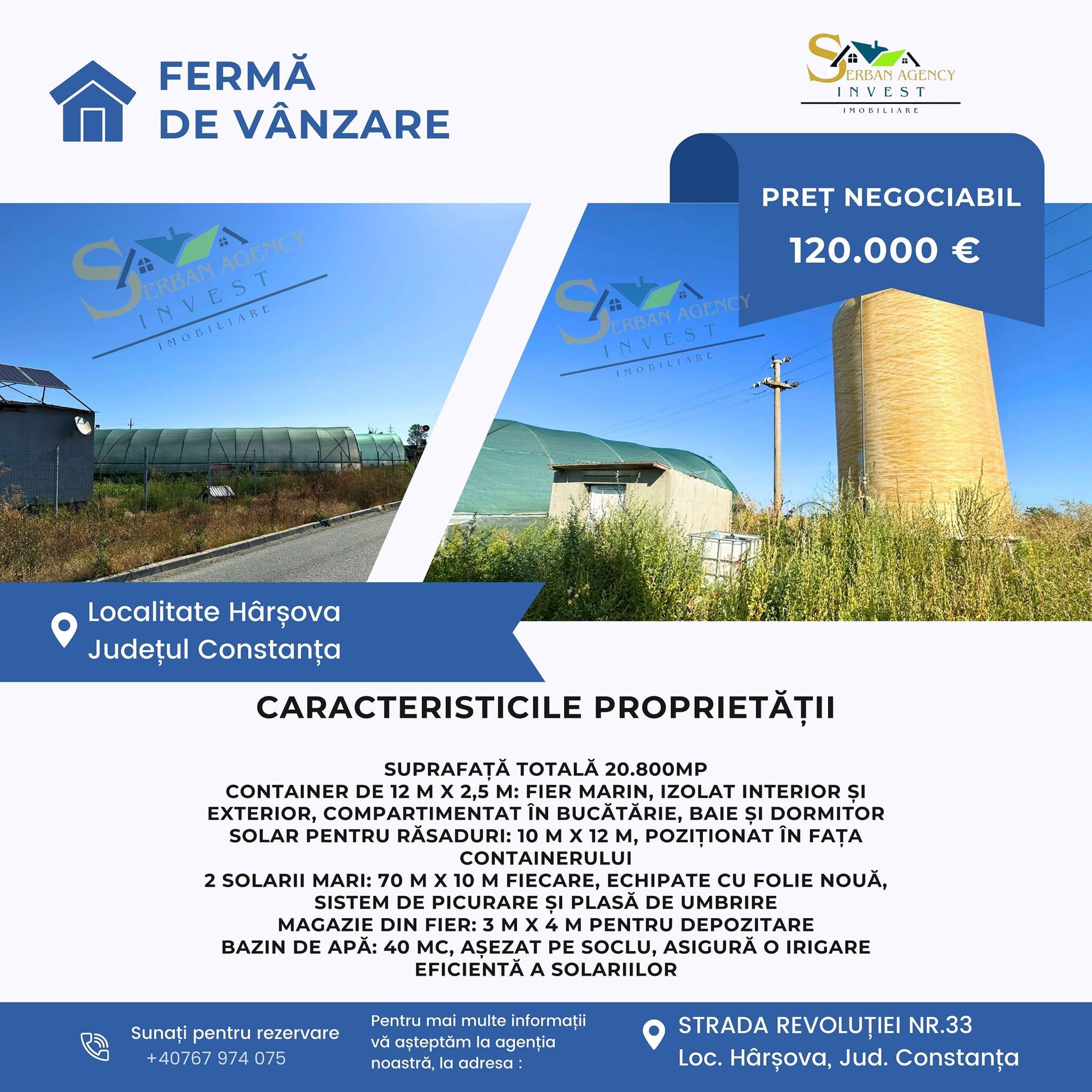 Notă: Nu răspundem la mesaje text. Pentru detalii și programări, vă rugăm să ne sunați. Nu ratați șansa de a deține această fermă complet echipată! Contactați-ne pentru vizionări și detalii suplimentare.