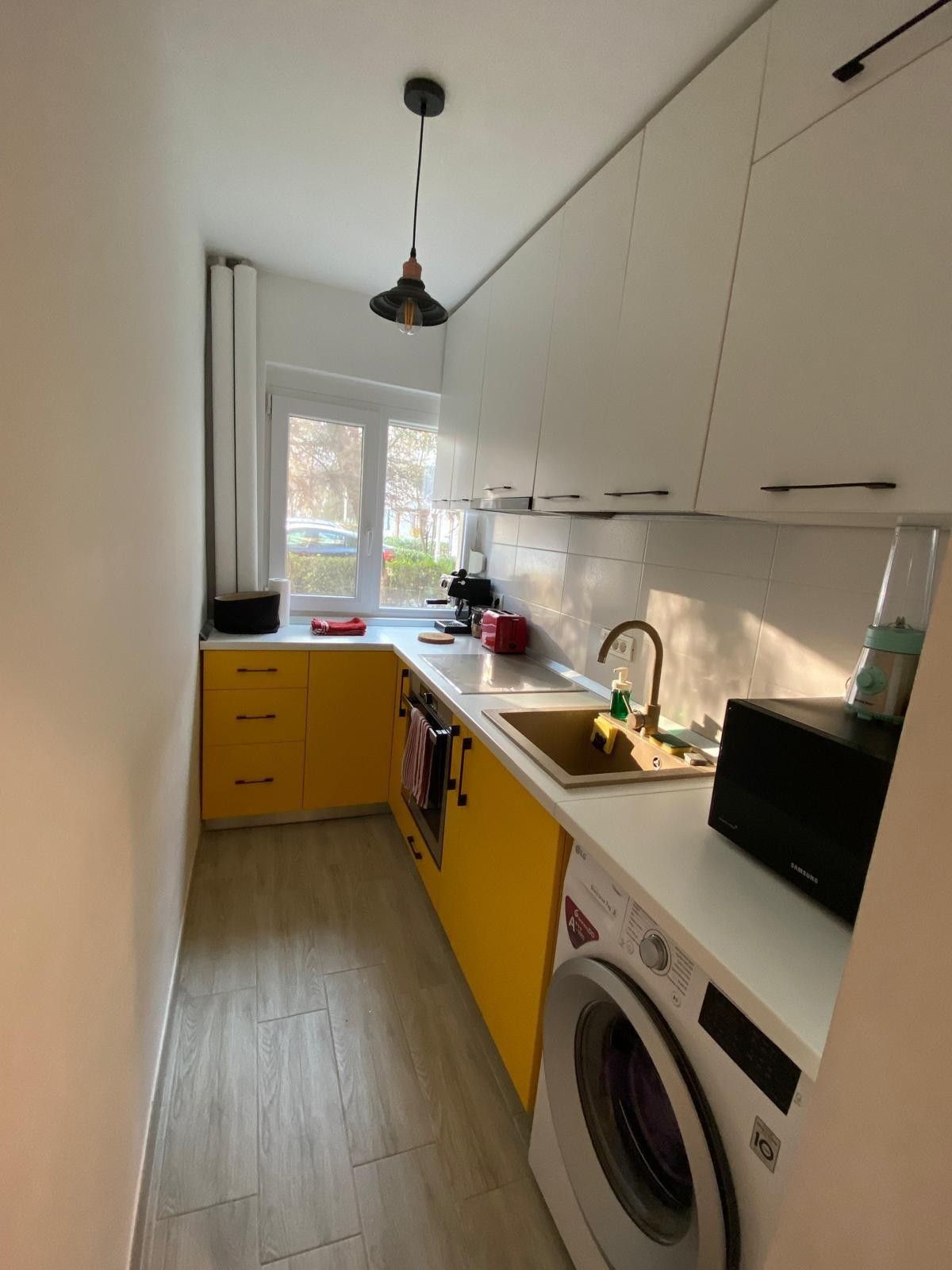 Dispune de AC, masina de spalat, frigider smart Lg, plita cu inductie si cuptor Whirlpool