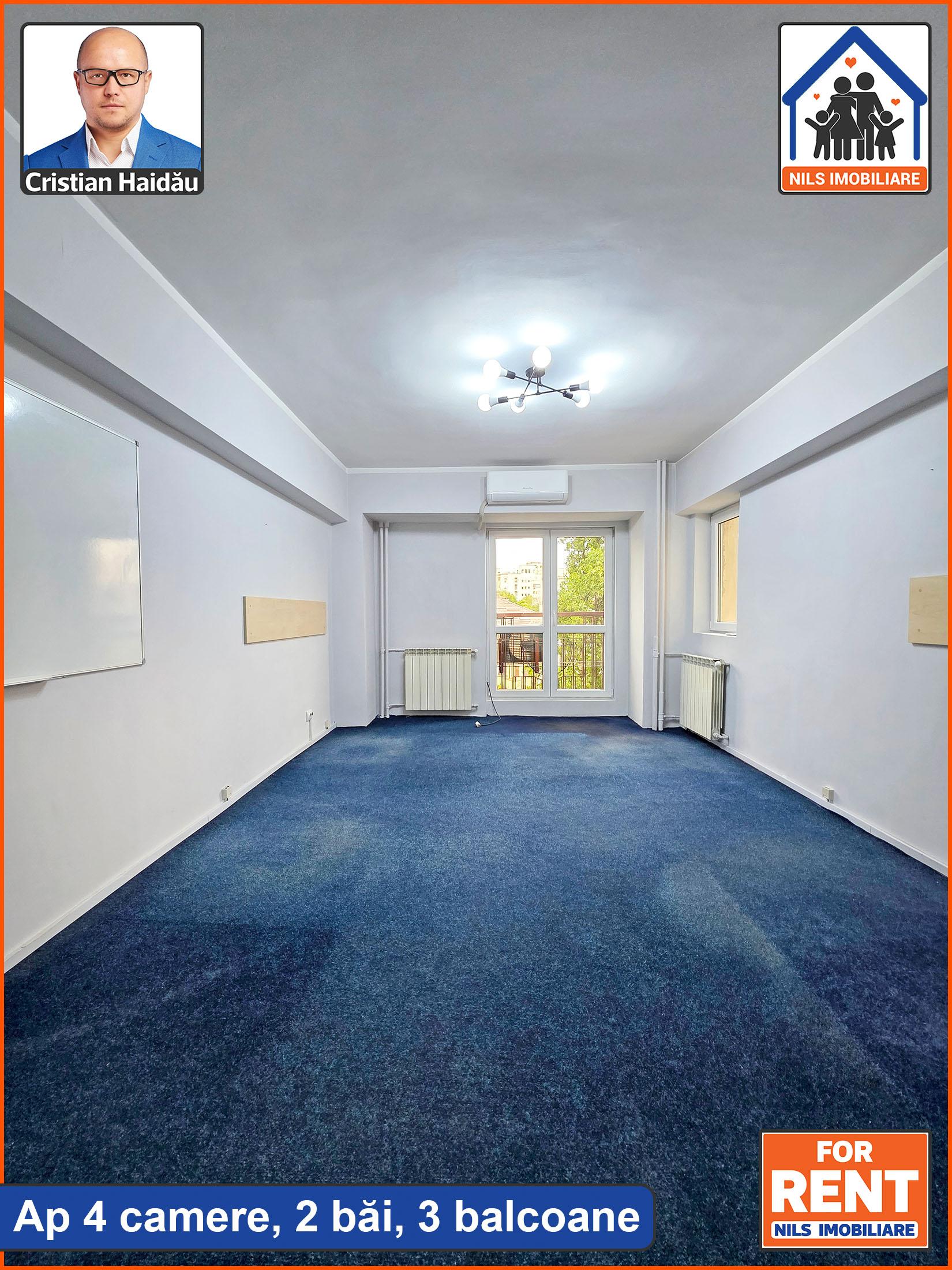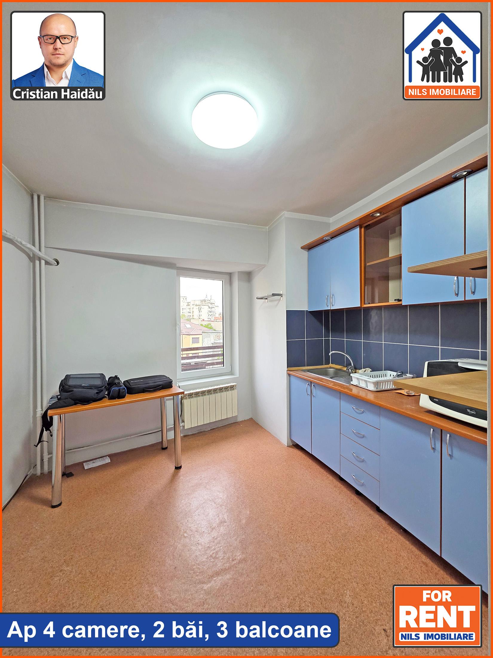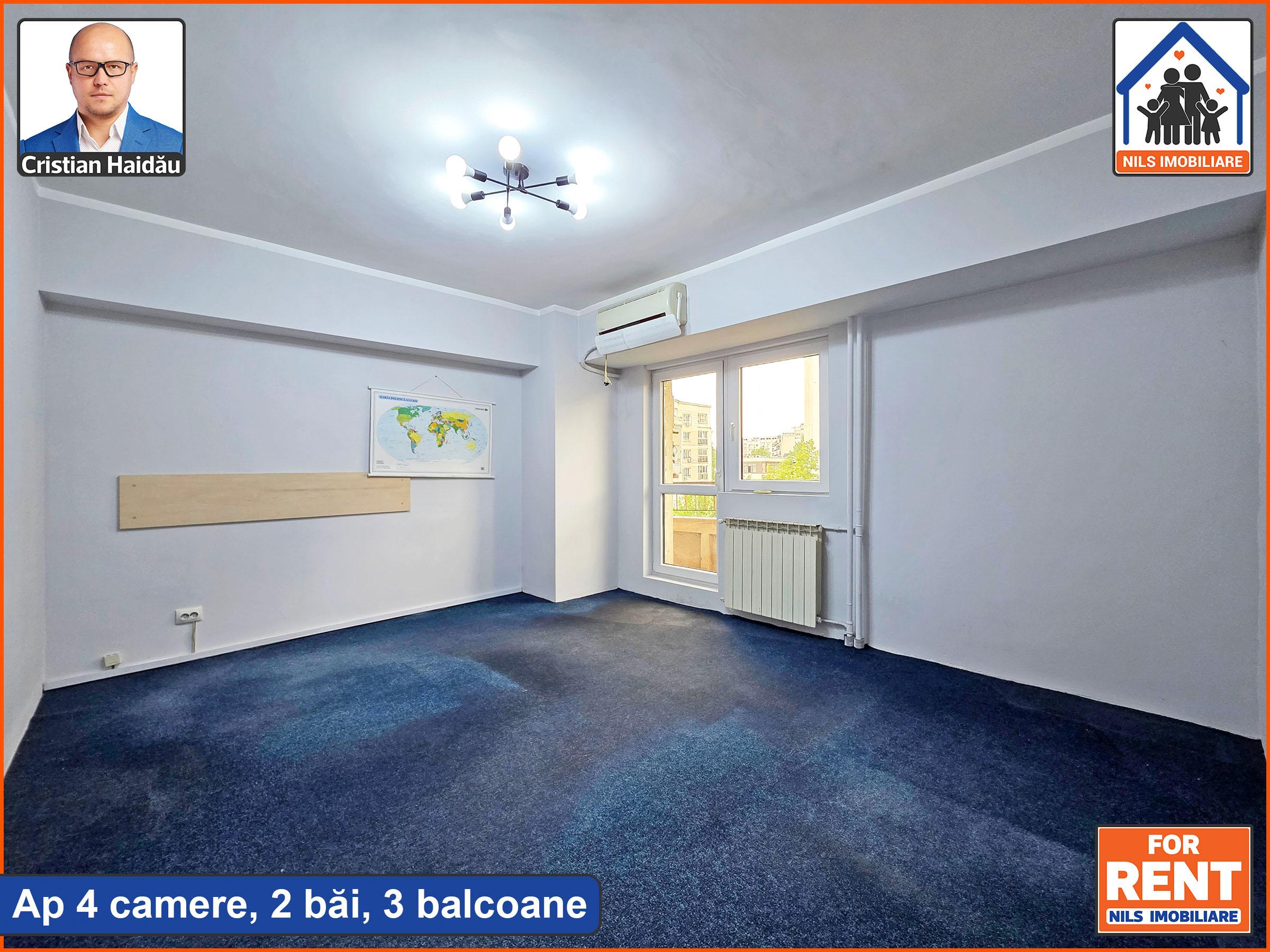 De inchiriat: Apartament cu 4 camere, doua bai si 3 balcoane. Suprafata 97mp. /