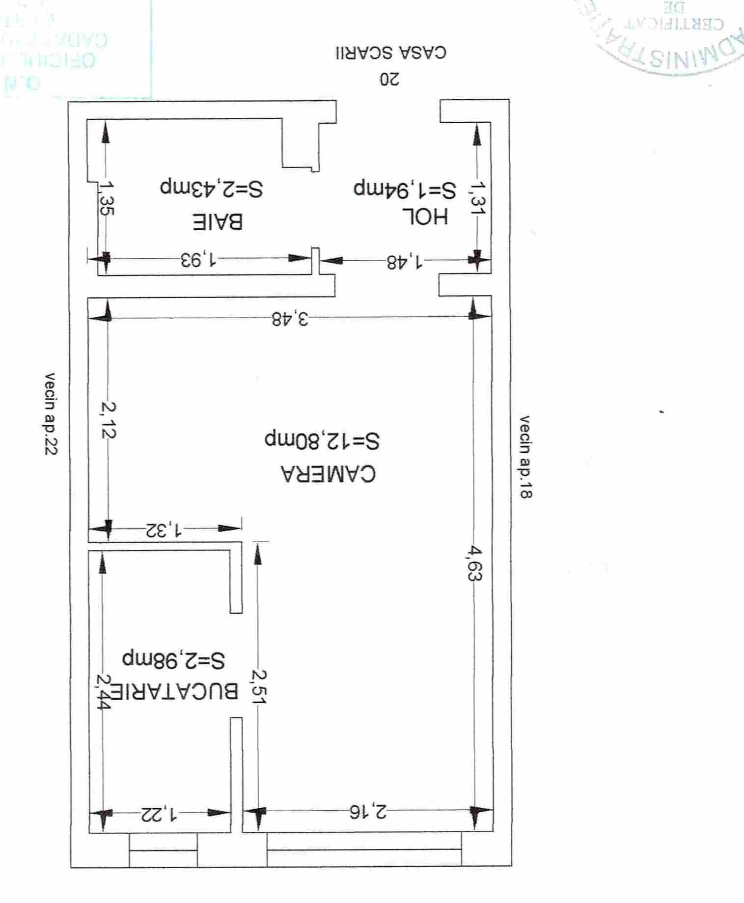 Garsoniera 20 mp ,zona Graniceri-Soveja,et 1,semidecomandata.