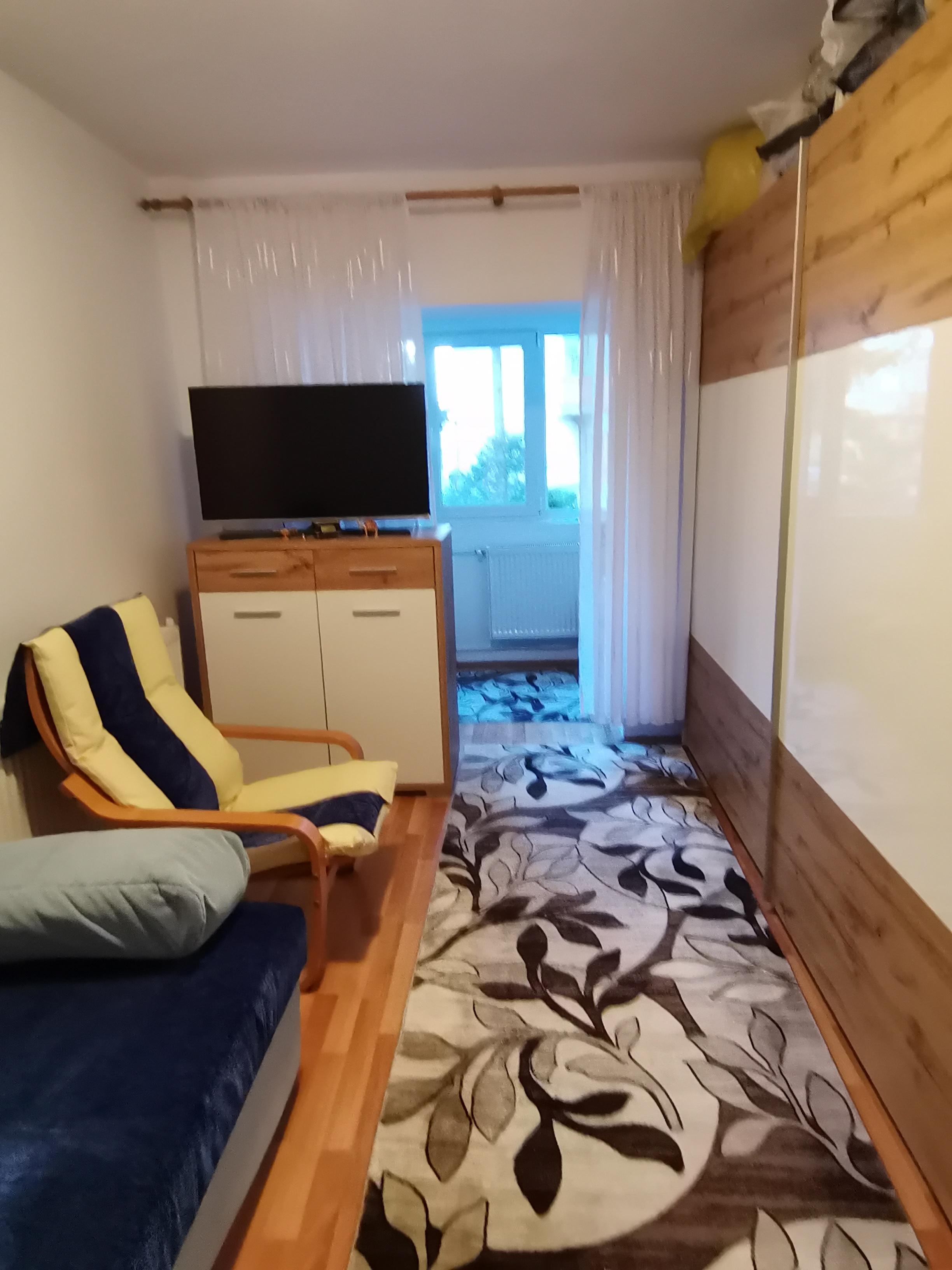Vand apartament la parter 64 mp, 2camere spatioase, cu doua balcoane mari inchise si incalzite, unul din ele are 9mp si poate fi amenajat o a treia camera.