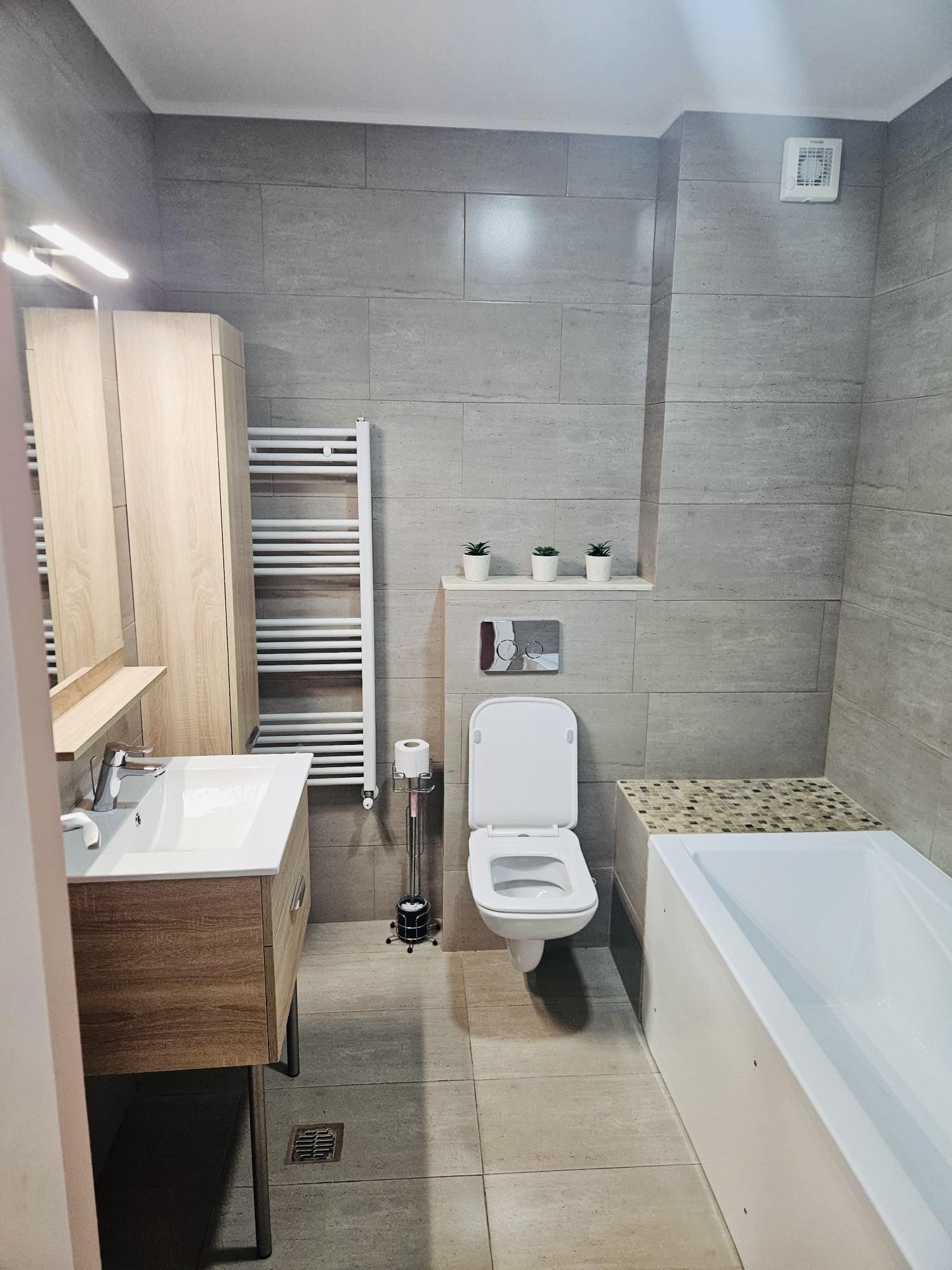 Vând apartament 3 camere, complet mobilat și utilat aflat în Complexul Tomis Park la etajul 5 din 8, localizat pe partea Sud-Est. Apartamentul este format din 2 dormitoare, 2 băi, living, bucătărie, terasă închisă și 2 balcoane. Suprafața utilă 72 mp-Suprafata construita 89 mp An construcție 2023 și a fost dat în folosință în luna Decembrie a anului 2023. Adresa: Str. Ștefănița Vodă, Nr.27A, poziționat lângă Euromaterna , Kaufland,Mall Vivo cu acces rapid spre Statiunea Mamaia. Dotări și facilități apartament: Mobilă executată la comandă din MDF . Centrala termică pe gaz Bosch. Lustre luminoase cu led( lumina caldă și rece reglabile). Oferim apartamentul împreună cu mobila și electrocasnicele încadrate în mobilă de bucătărie ( mașina de spălat vase, mașina de spălat rufe, plită, cuptor), toate achiziționate în 2024 și aflate în garanție. Aer condiționat Dezit. Geamuri termopan tripan, sticlă securizată și protecție solară. Terasa de sticlă închisă cu vedere la unitatea militară. Panouri și rulouri în living și terasă de sticlă închisă. Complexul este prevăzut cu un parc și loc de joacă pentru copiii îngrădit unde au acces doar locatarii. Sediu de pază și protecție aflat la parter . Video fon. Locuri de parcare la liber în fața scării și posibilitatea achiziționării unui loc de parcare subteran .