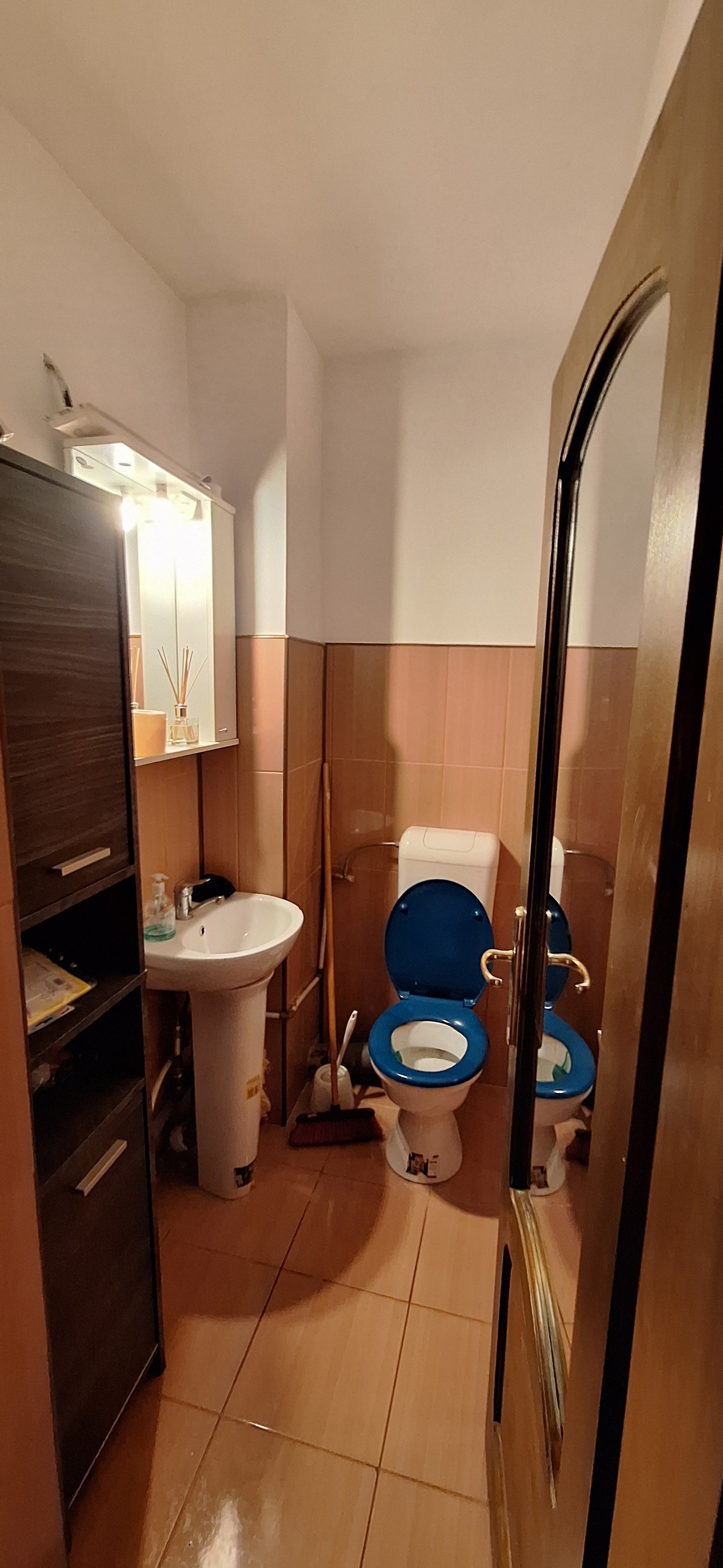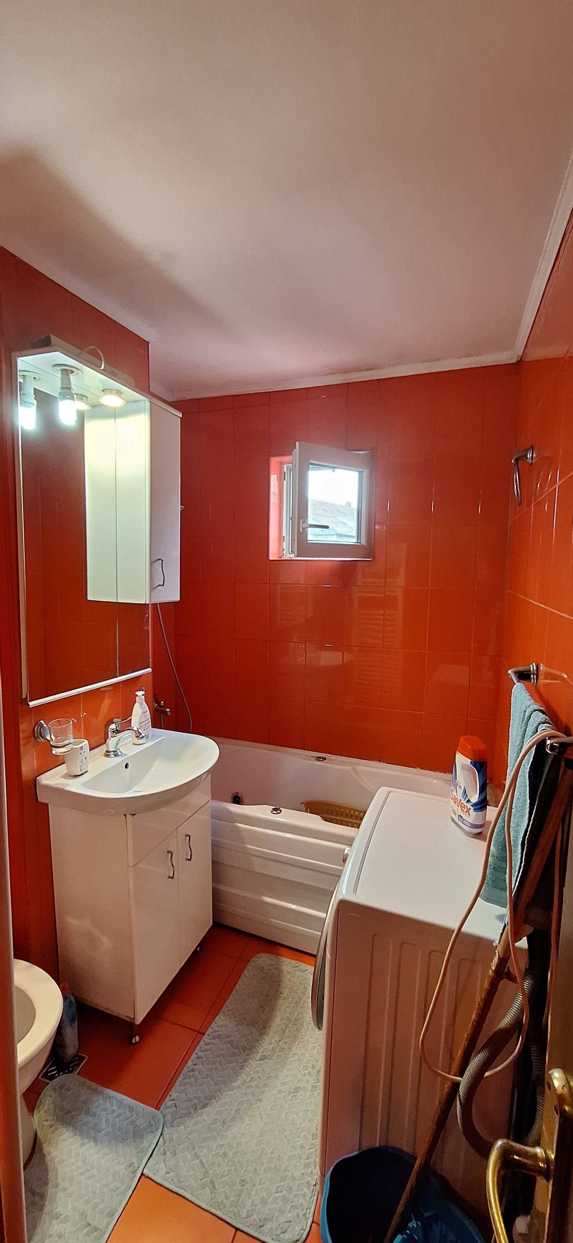 - baie cu cadă și geam de aerisire,