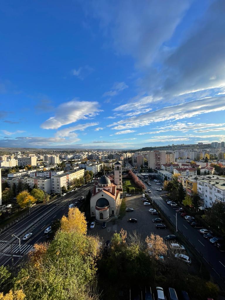 Apartamentul situat la etajul 10, oferă o panorama superba asupra orașului.