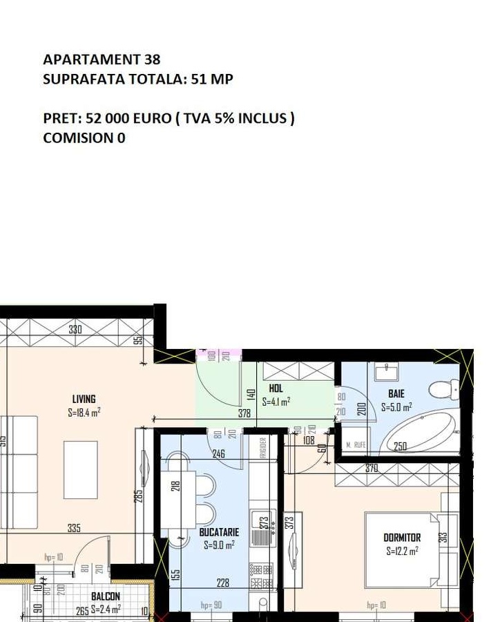 Diamantului Residence, un un ansamblu rezidential spectaculos! La inceputul anului 2021 am finalizat și predat cu succes 200 de apartamente ! Continuam proiectul cu entuziasm si incredere. Apartamentul propus este complet decomandat, cu o suprafata totala de 52 mp, compus din: bucatarie, living generos cu balcon , dormitor matrimonial, hol, baie complet utilata cu obiecte sanitare moderne. Detalii care conteaza: Localizare de exceptie, statie STB in fata complexului Calitate ridicata a finisajelor şi a dotarilor Pret unic indiferent de modalitatea de plata Apartamente cu o structura deosebita, decomandate si bine configurate Toate imobilele sunt racordate la utilitatile publice Locuri de parcare supraterane Acces controlat prin bariere automate si monitorizare video 24/7 Finisaje personalizate de catre cumparator Infrastructura completa, strazi asfaltate, trotuare, iluminat public Va invitam la o vizionare pentru a va face o idee mai clara asupra ansamblului, apartamentelor dar si a facilitatilor prezente in cadrul complexului. Florentina Nencu Direct dezvoltator- Comision 0 0762.868.867 0771.714.542