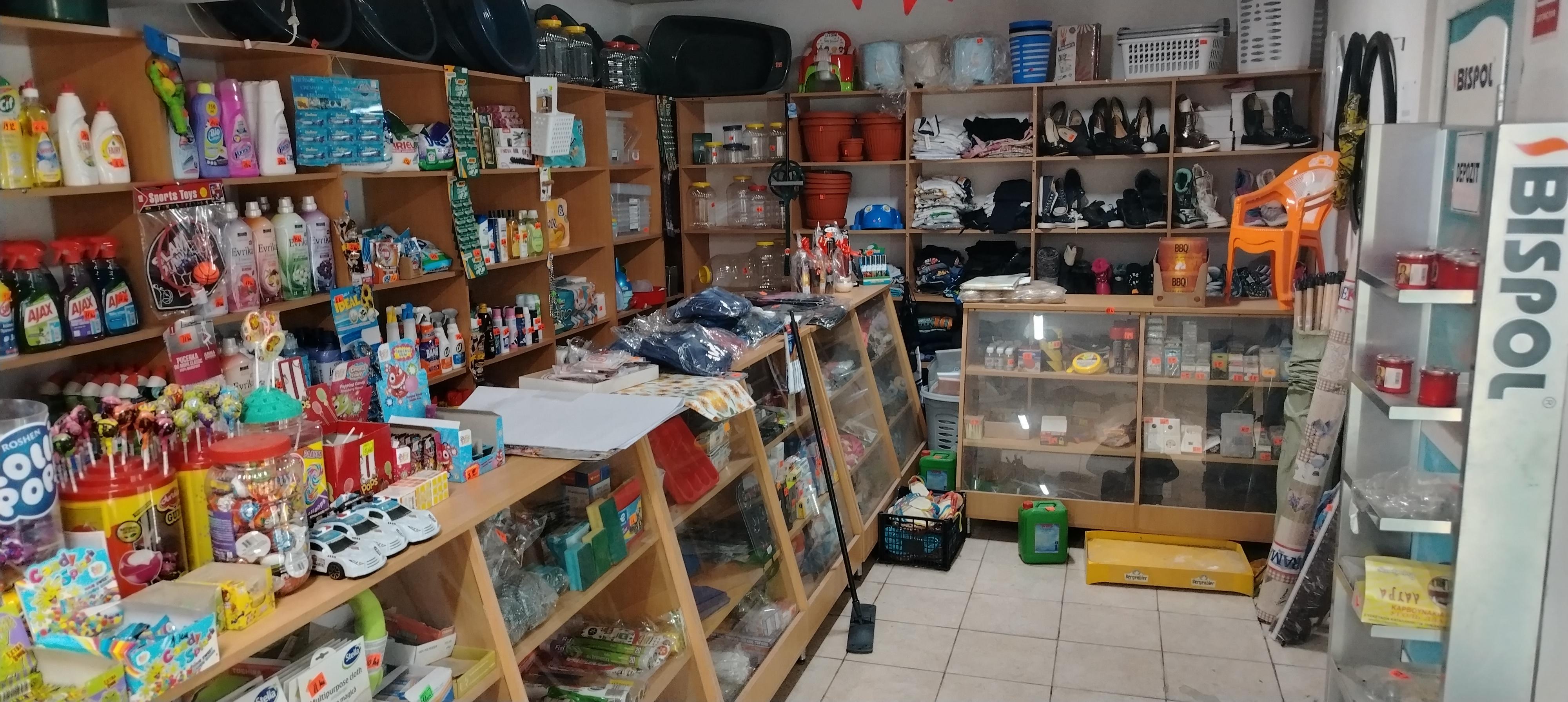 Spațiul comercial cu rafturi, vitrina pe perete are și un teren de 2000 de mp (25 x 80)