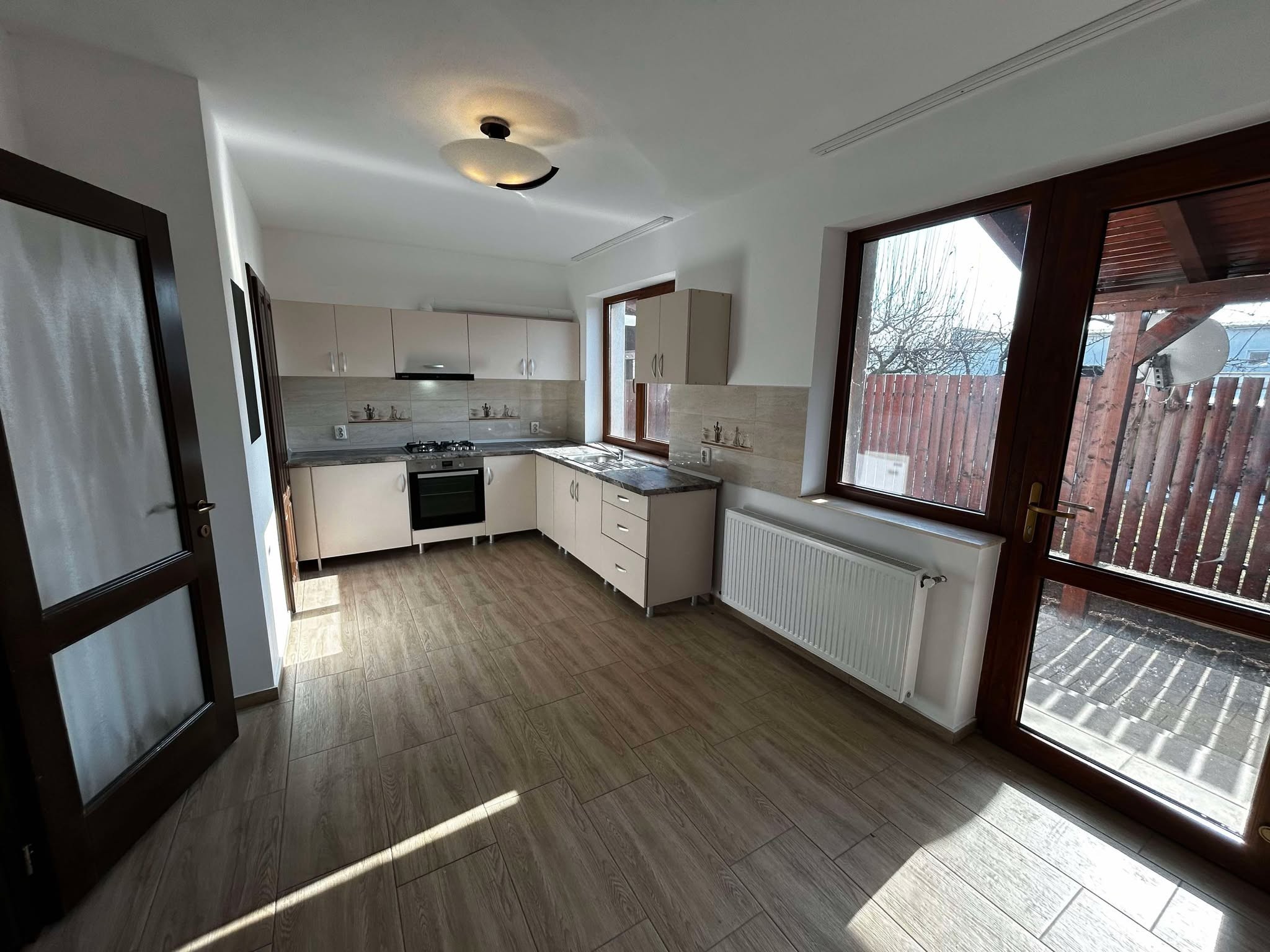Inchiriez casa parter + etaj, 1 living, 3 dormitoare, 1 bucatarie, 2 bai. Nemobilata. Bucataria este mobilata dotata.