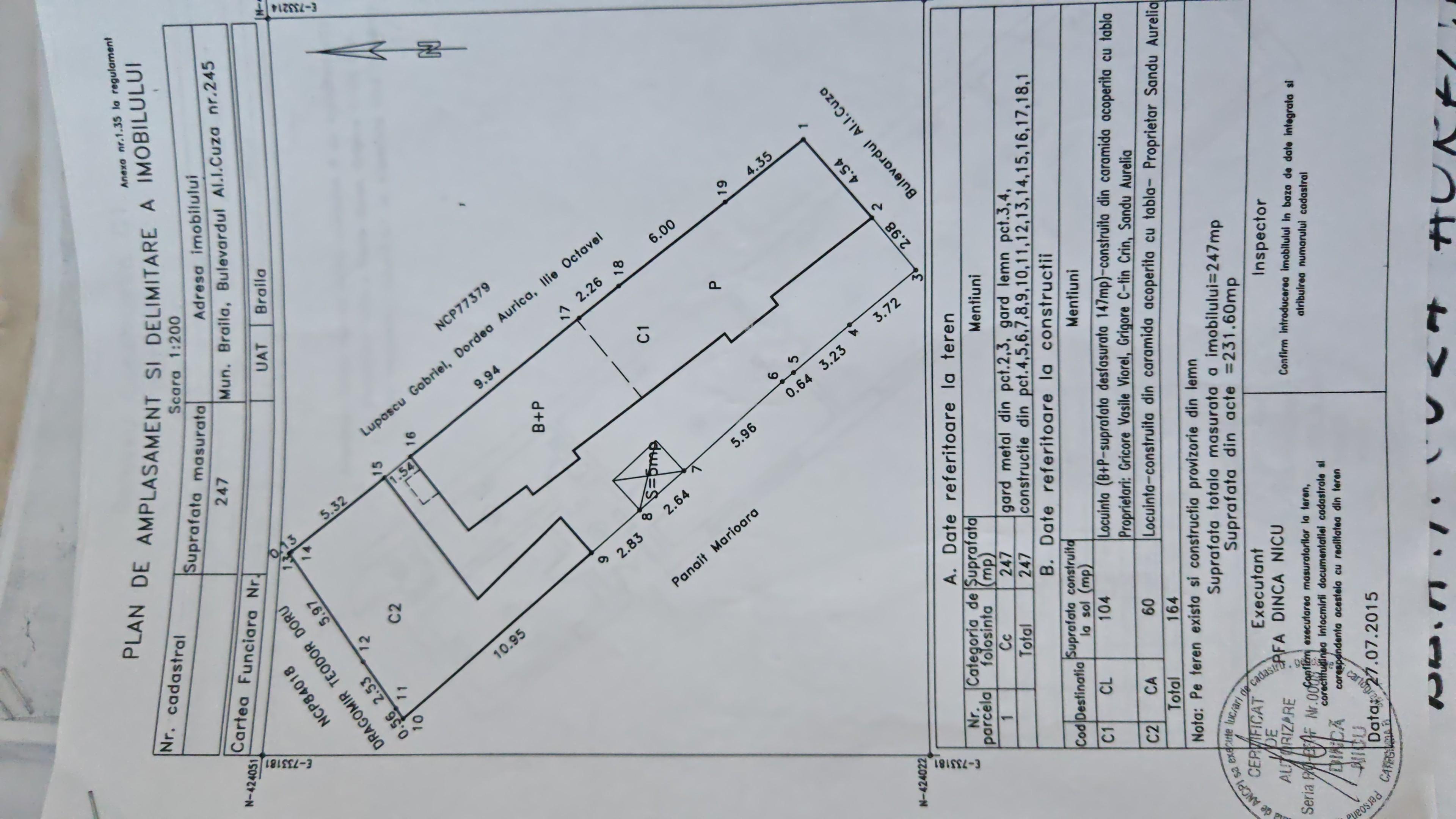 Vând casă situată în centrul orașului Brăila, într-o zonă liniștită și cu acces facil către mijloace de transport, magazine, școli și alte facilități urbane. (Bulevard Al. I. Cuza, aproape de Calea Galati)Suprafață totală: 115 mpSuprafață utilă casă: 60 mp (imobilul C2 din planul cadastral)Anexe: beci, magazie, WC în curteCasa este compusă din:2 camere semidec., bucatarie, baie, hol.becispațiu de depozitare (magazie)grup sanitar în curteStare imobil: Locuibil însă mai necesită unele renovari (ideal pentru investiție sau personalizare completă)Încălzire: centrală pe gazFerestre: termopanLocație excelentă – ultracentrală, aproape de toate punctele de interes din Brăila.Imobilul se vinde mobilat asa cum se vede in imagini.Instalatie electrica schimbată în 2009.Mențiune: În curte mai locuiește o altă familie (proprietate comună - facturi de gaze și lumina separate). Zonă liniștită.