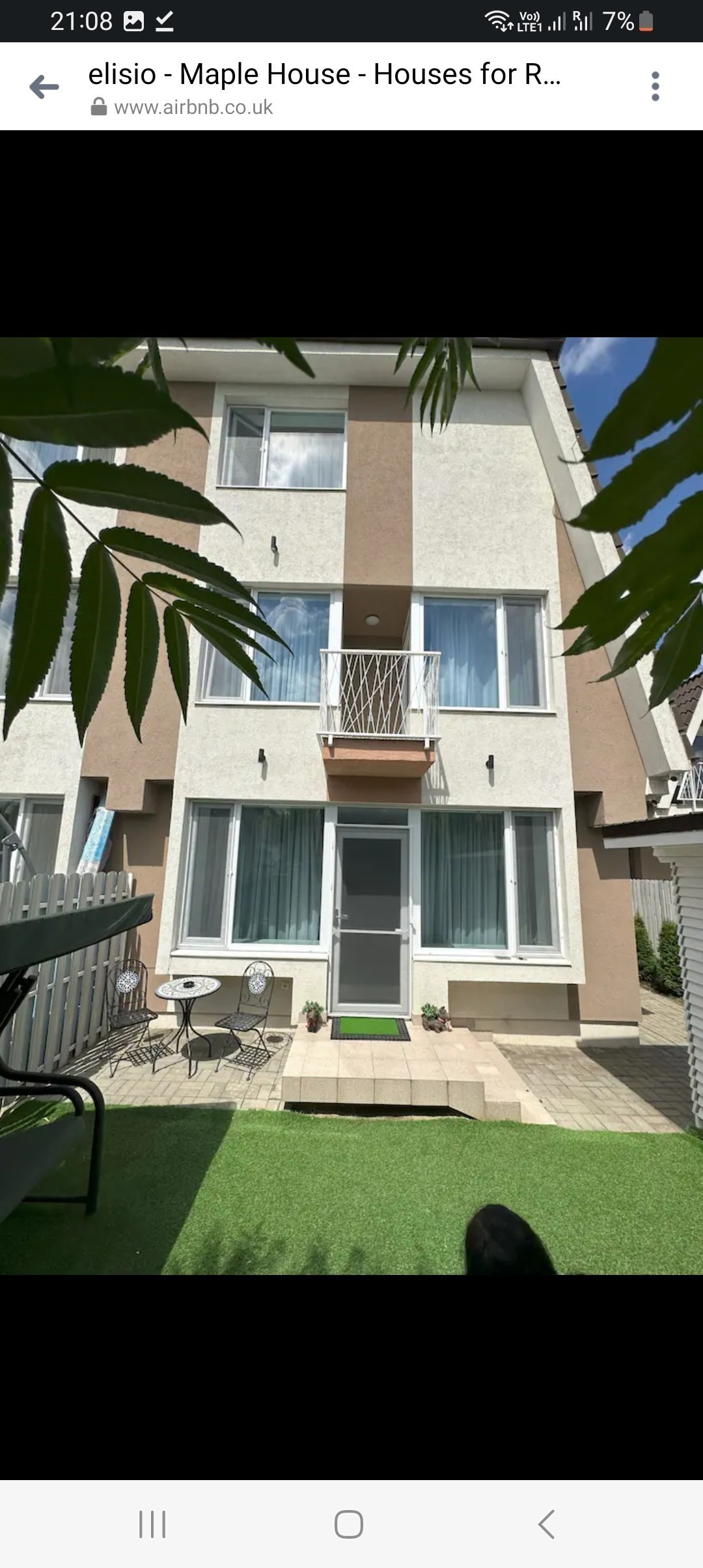 Curtea : gazon artificial balansoar gratar mare pe gaz , foisor cu masa mare si scaune .