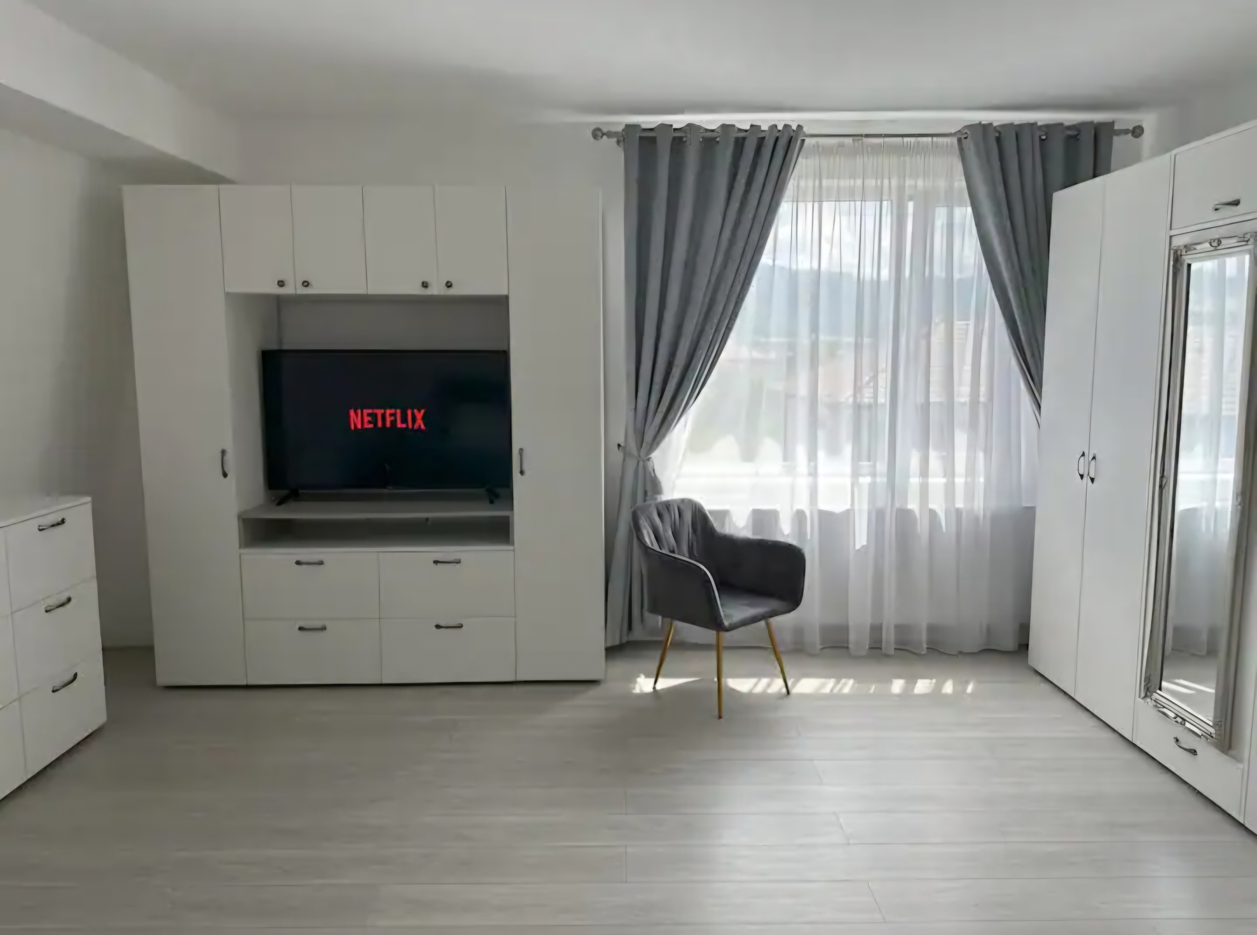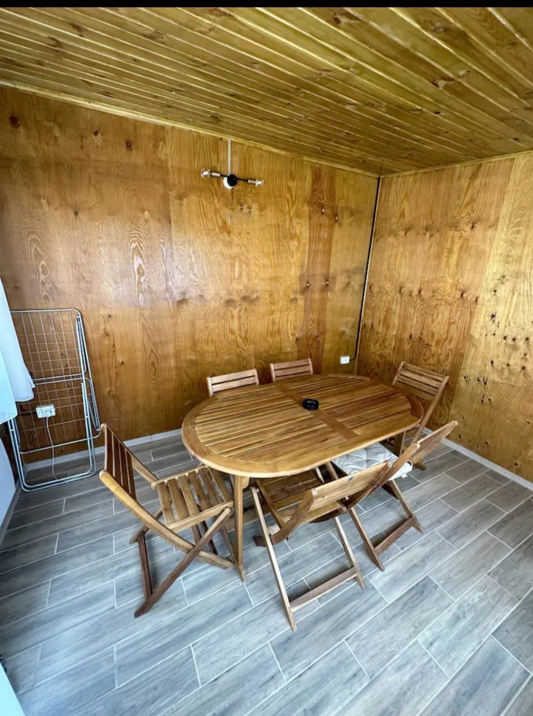 Parter : living cu bucatarie open space totul mobilat si utilat cu toate necesare , baie cu cabina de dus .