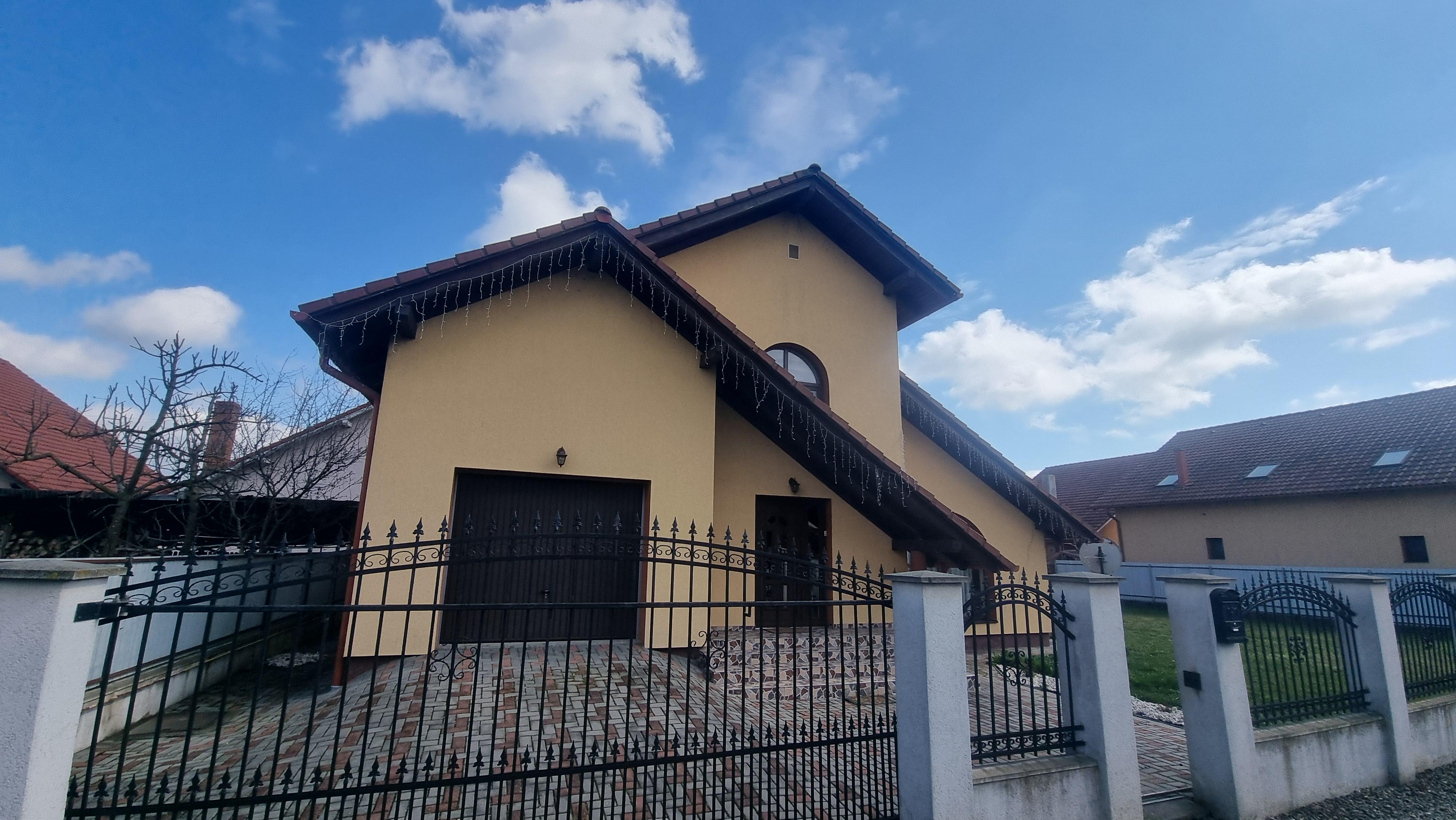 Casa este înconjurată de un gazon frumos amenajat, dotat cu sistem de irigație automat. Locuința este dispusă pe parter și etaj, având următoarea compartimentare: