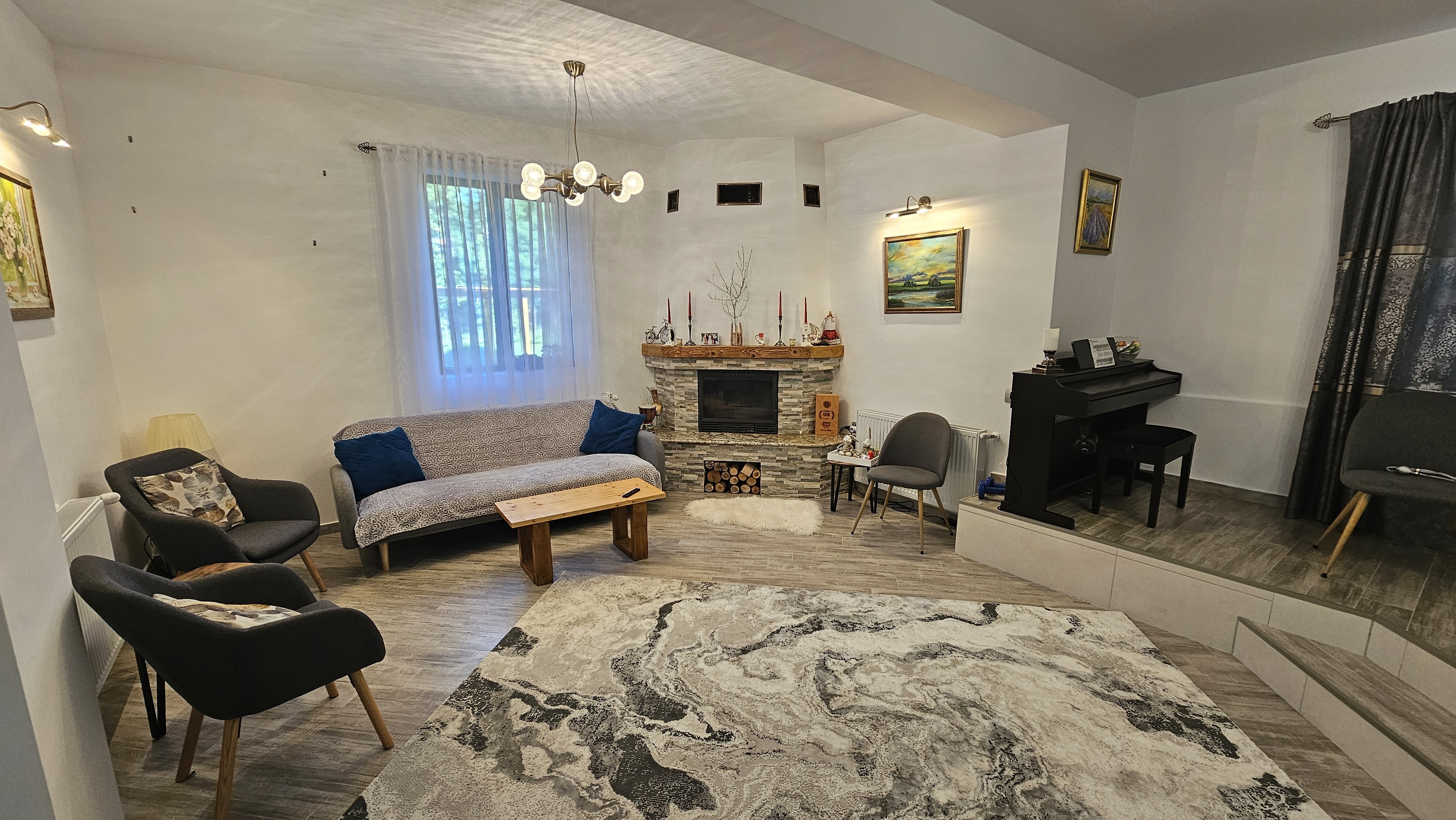 Schimbare totala insatlație sanitara și instalație electrică , calorifere noi -21 buc., centrala pe peleți 40kw nouă cu pornire wifi.