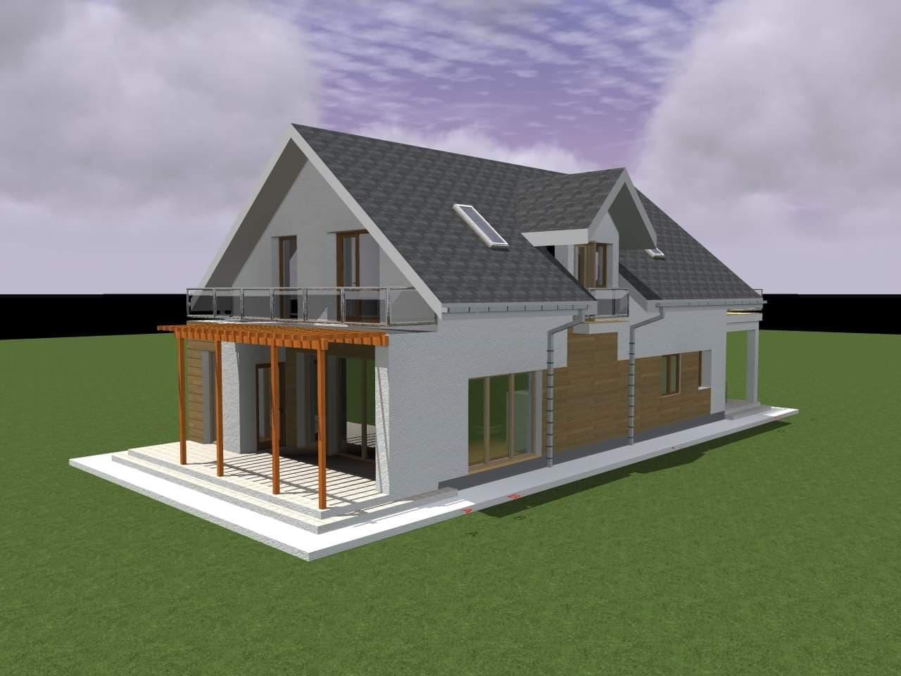 La etaj sunt doua dormitoare cu balcoane proprii,o baie,o bucătărie cu iesire pe balcon,un dormitor matrimonial cu baie și dressing propriu care la rândul sau are iesire pe o terasa la fel de generoasa de 30 mp.