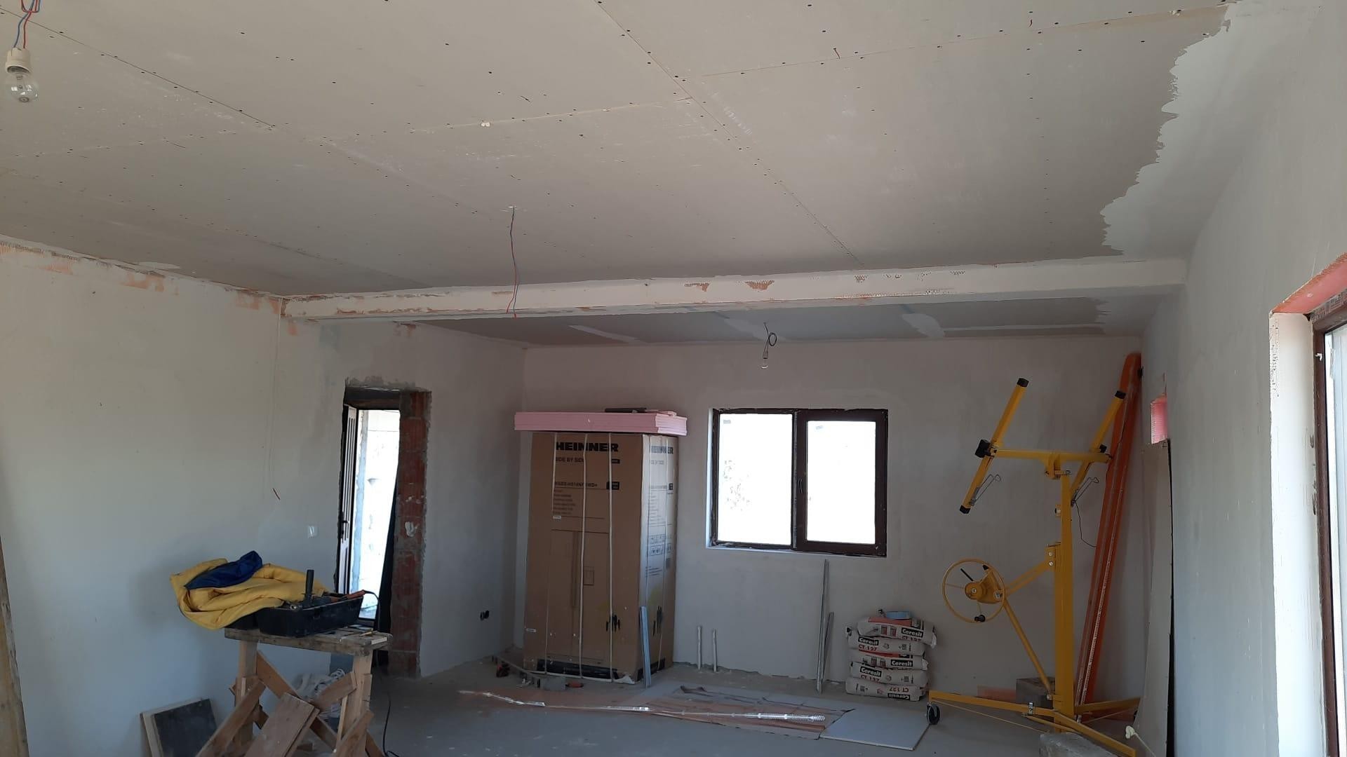 Living, 42 metri, Tavan rigips, si o mana de glet pe pereti.