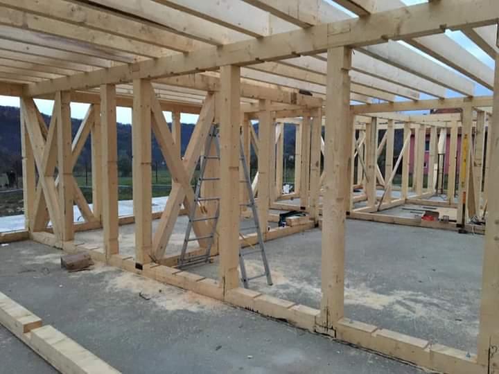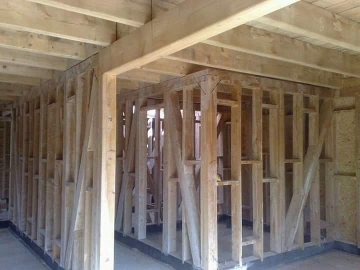 Casă pe structura de lemn la roșu. Fundația, instalații electrice, sanitare, izolație, acoperiș din tablă, montabilă pe terenul dumneavoastră,100 metri pătrați suprafață construită. Proiectul și partea de arhitectură la alegerile dumneavoastră. Accept variante cu teren arabil in zone pitorești,auto evaluate corect.