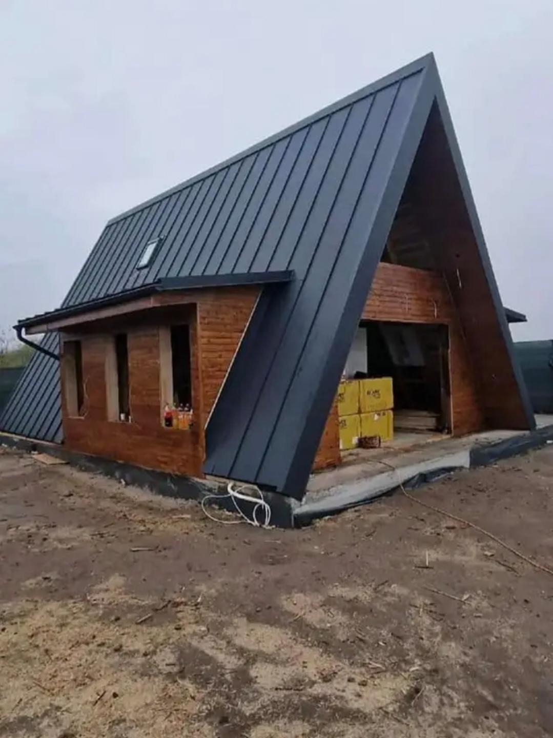 ✅Case modulare, garaje auto din structura metalica si panou sandwich termoizolant si cabane din lemn, de tip A, dimensiuni in functie de preferintele clientilor cu proiectul clientului sau dupa proiectele noastre.