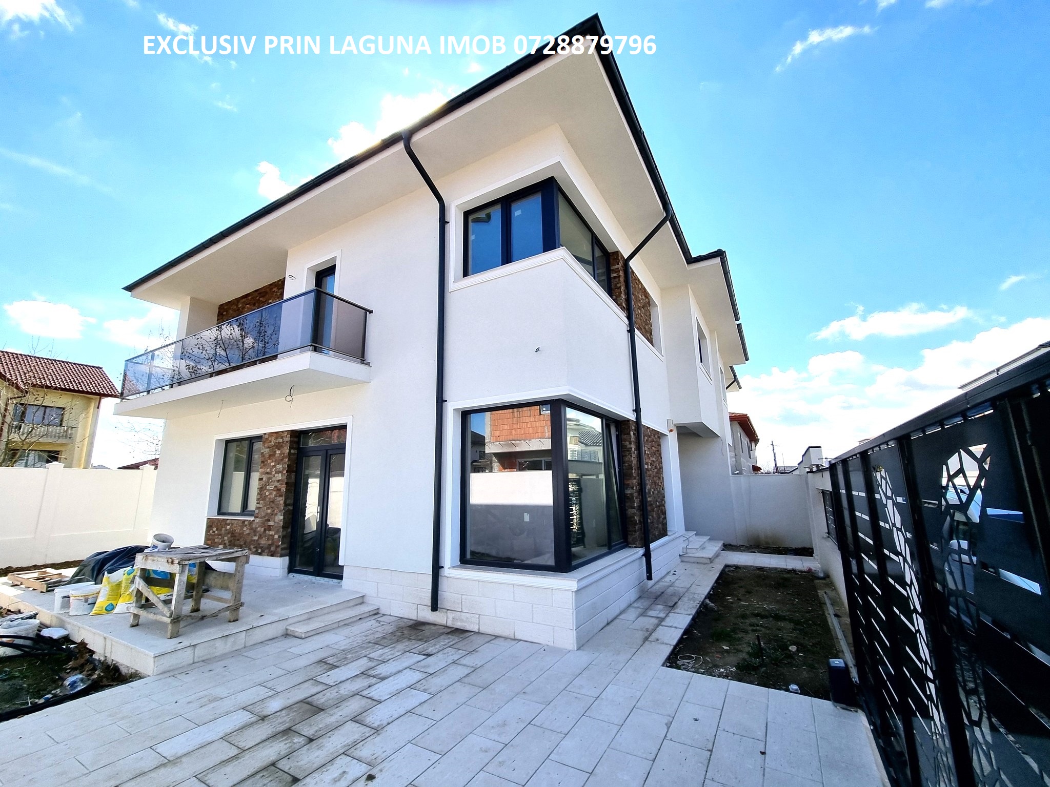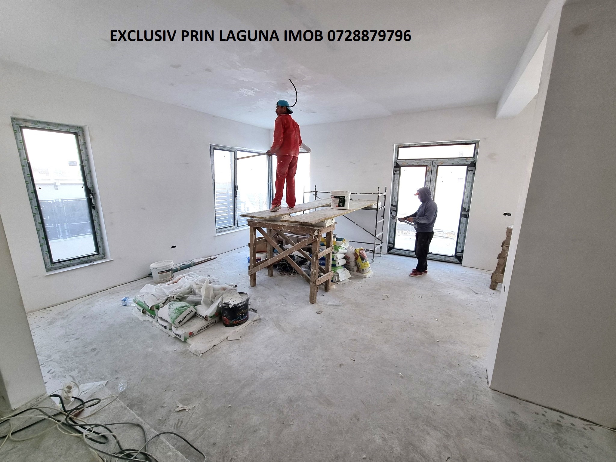 Detinem imagini si filmari de la fundatie si pana la final, punem la dispozitie carte tehnica si proiect, imobil tip duplex, cu pereti dublati si izolati cu 10 cm la mijloc, stalpi dublati, fundatie dublata, constructie foarte rezistenta, construita din beton armat si caramida porotherm, izolatie exterioara 10 cm, tamplarie veka, incalzire in pardoseala, s-au folosit doar materiale premium, se vinde la alb precum in imagini, vila se intinde pe o suprafata construita de 205 mp si este structurata astfel: