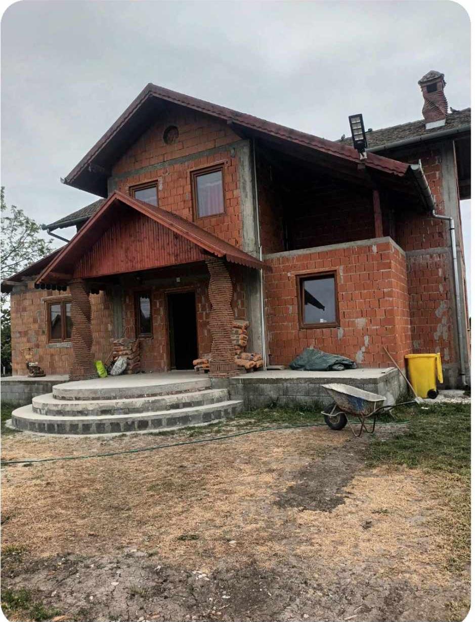 vând casă În sannicolau mare strada Caransebeș nr 6 casa are 5 camere 2 băi living mare de 13 metri și 4m lățime cu bucătărie cu și 2 întrări în spate din living intrare din curte si din living in bucătărie casa este făcută din Anul 2015 de jos din cărămidă roșie teren peste 1800 de metri casa este acordată la baz apă și curent este locuibilă preț 150000€ pentu informații la tel sau watap Alin 0033751264721