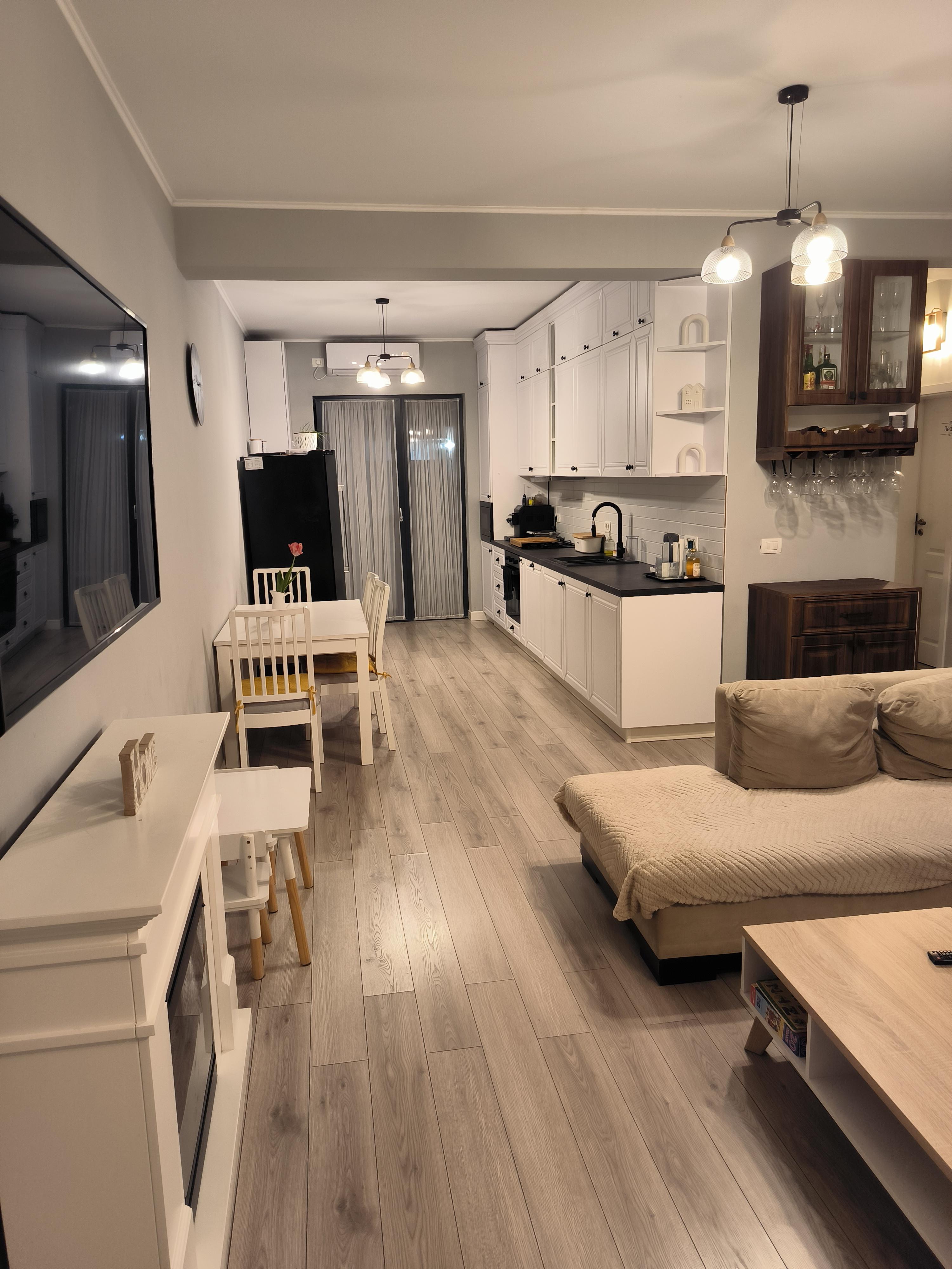 Vand duplex pe parter in Mosnita Noua, 89,1 m2 utili pe teren de 321 m2, complet mobilat si utilat. Casa dispune de 4 camere si 2 bai, living open space cu bucatarie.
