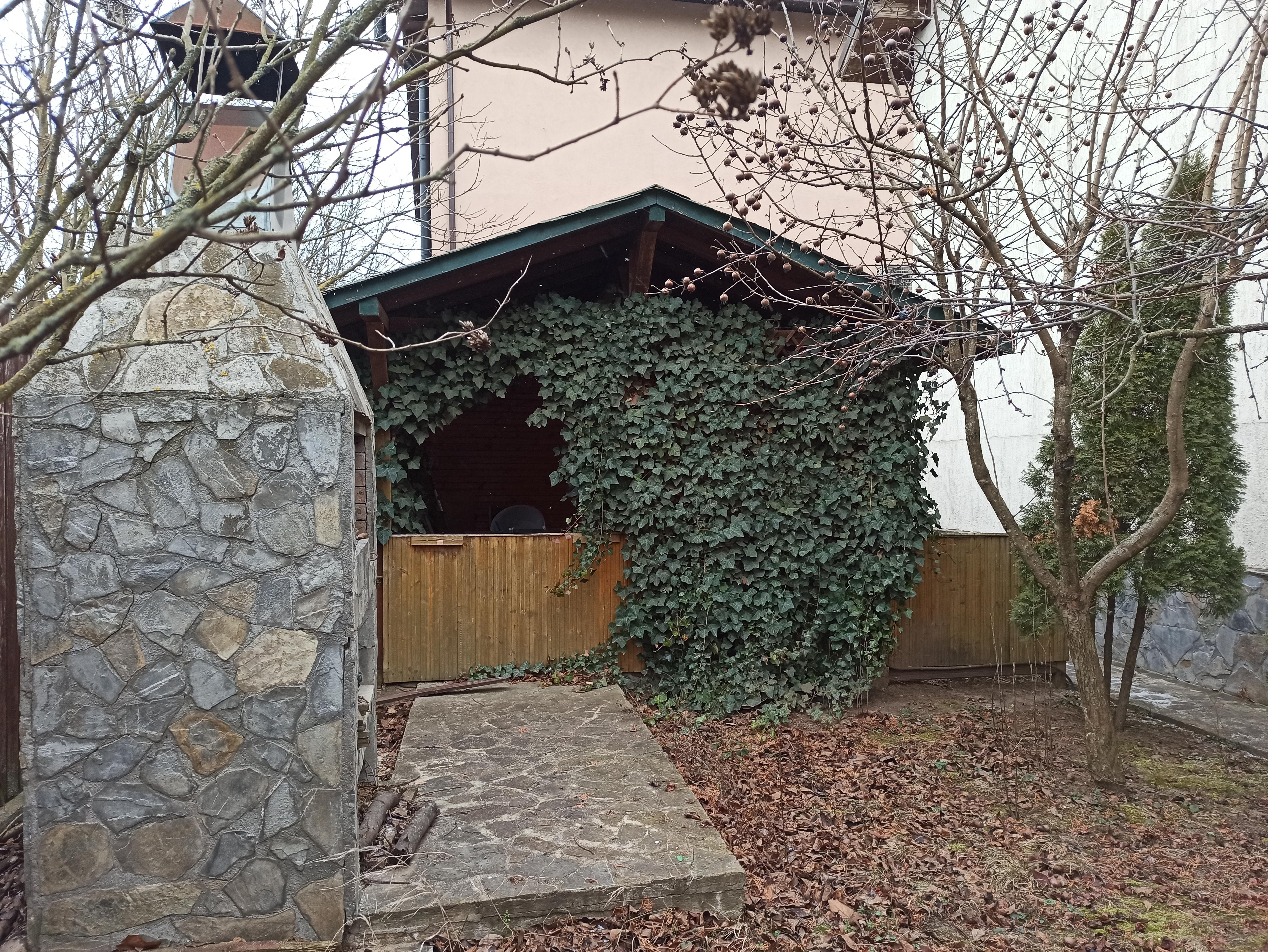 In curte are un foișor acoperit, grătar din piatra de rau și beci .