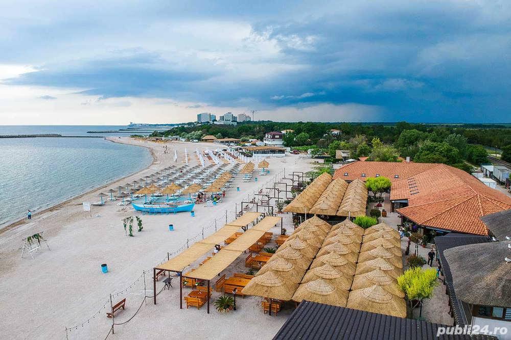 Va propunem spre inchiriere un studio in cadrul complexului Blaxy Premiun Resort, regim hotelier, la etajul 10 cu vedere panoramica asupra Marii Negre, complet mobilat si utilat, pat matrimonial, canapea extensibila, TV, balcon (cu masuta si scaune), uscator de par, fierbator apa, grup sanitar propriu, piscina in cadrul complexului (piscina pentru adulti si piscina pentru copii), locuri de joaca pentru copii, locuri de parcare, 3 minute pana la restaurantul Popasul Pescarilor.