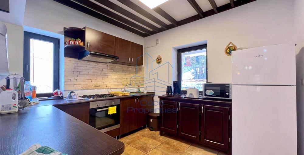 Agentia imobiliara Coco Properties va propune spre vanzare o afacere in domeniul turismului, constand in pensiune cu 11 camere, situata pe str. Gheorghe Doja nr. 25, in Sinaia, jud. Prahova.Pensiunea are regim de inaltime D2+D1+P+2E si pod neamenajat, fiind structurata astfel:- la demisol 2 se afla camera tehnica cu centrala pe gaz, boiler, spatiu pentru uscat rufe, hol si 1 camera cu baie proprie- demisol 1 este organizat in spatiu pentru locuit cu 2 dormitoare si baie proprie- la parter se afla sala de mese cu bucatarie comuna si iesire pe terasa - etaj 1 se afla 4 camere spatioase cu baie proprie si balcon- la mansarda se afla 4 camere spatioase cu baie proprie si balconSuprafata utila totala este de 520 mp.In curte este amenajat loc de gratar, astfel ca viitorii turisti se vor bucura de aerul proaspat de munte, pregatind mese delicioase si relaxandu-se. Paraul care strabate proprietatea te imbie la petrecerea timpului liber la aceasta frumoasa pensiune.Locatia are construita parcare la nivelul solului, cu o structura ce a fost proiectata pentru a putea edifica o cladire P+2E.Afacerea a fost demarata in anul 2011, iar in prezent cele 8 camere de la etajul 1 si mansarda sunt folosite pentru a primi oaspeti. Pensiunea a fost renovata la sfarsitul anului 2021, este cunoscuta si foarte cautata in circuitul turistic, avand un scor total pe platforma booking de 9,3/10.Orasul Sinaia este una dintre cele mai faimoase statiuni montane, situat la poalele muntilor Bucegi, la circa 60 km nord-vest de Ploiesti si la 50 km sud de Brasov. Sinaia este un important centru turistic si de desfasurare a unor conferinte internationale si nationale, exista amenajari speciale destinate practicarii sporturilor de iarna: partii de schi de diferite grade de dificultate, partii pentru sanius. Are conditii de petrecere a timpului liber dar si de tratament, in toate anotimpurile anului, pentru oameni de toate varstele.Exploreaza aceasta proprietate deosebita accesand turul virtual, iar pentru programarea unei vizionari apeleaza numarul de telefon.Comision cumparator 0%!