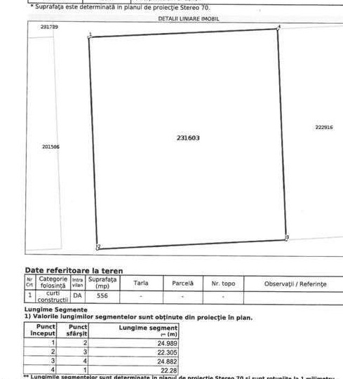 Vand teren intravilan pentru constructii cu suprafata de 556 mp 22/25 ml,situat intre case. Terenul se afla pe strada Spicului,Zona Palazu Mare,pe colt cu acces la 2 strazi. Terenul se vinde insotit de un proiect de casa P+1 de 217 mp construiti/157 utili si autorizatie de constructie emisa la inceputul anului 2022 de Primaria Constanta. Utilitati apa si Canalizare trase in fata terenului. Pret 230 euro/mp
