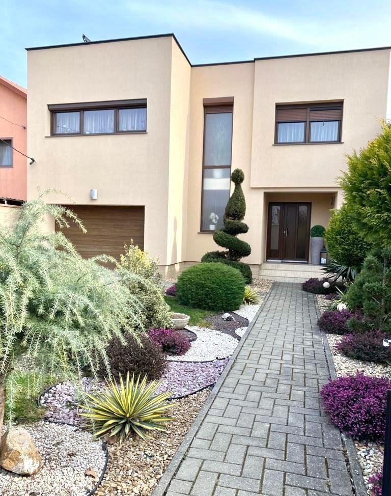 Vand vila moderna 3 dormitoare, living, bucatarie, 2 bai, garaj, camera tehnica, spalatorie, spatiu depozitare, complect amenajata si utilata, incalzire pe gaz in pardoseala, panouri solare, situata in Bujac pe str Ghioceilor aproape de stadionul sega, suprafata utila 238 mp, suprafata teren 500 mp