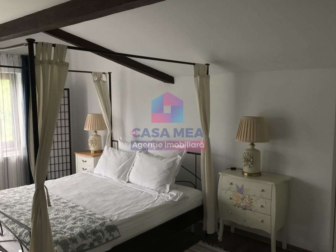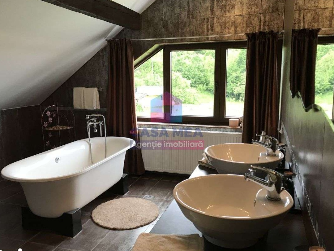 Agentia imobiliara La Casa Mea, va propune, spre vanzare o vila moderna, amplasata pe Calea Poienii in vecinatatea complexului rezidential StejerisuluiResidence, la 3 minute de centrul orasului si 5 minute de Poiana Brasov. Vila este constructie noua, cu finisaje de lux, orientate spre sud cu o perspectiva senzationala asupra centrului vechi al Brasovului, cu o arhitectura deosebita, dispusa pe P+E+M., parterul dispune de living, bucatarie, baie, camera centralei si apartament doua camere, etajul 1 dispune de 4 camere cu bai proprii si terase iar ultimul etaj un penthouse deosebit cu living stil american cu bucatarie, 2 dormitoare generoase, 2 bai si doua terase spatioase. suprafata utila este de 420mp, iar gradina 575mp cu piscine descoperita. Poprietarea se vinde coplet mobilata si dotata, numar etaj: P+1+M, numar camere: 8, numar loc de parcare: 7, numar bai: 7, suprafata utila: 420, suprafata totala: 600, suprafata construita: 420, anul constructiei - 2011,Utilitati Generale: Apa, Statie Epurare apa, Curent, Sistem Incalzire: Calorifere, Centrala propriw, Acces internet: Fibra optica, Wireless, Dotari imobil: curte, piscina exterioara.Drumul privat de acces la proprietate si parcarea cu 7 locuri de parcare sunt asfaltate.Comision agentie 2% .Marius Cioaca - 0772 005 806