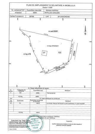 De vânzare teren intravilan în localitatea Chilieni județul Covasna, la DN 12,drumul care duce din Sfintu Gheorghe spre Brașov, în aproprierea pensiunii Calipso. intravilan 5600 m2 deschidere de 66 metri, curentul si apa de la retea se afla pe teren. iesire autorizata, dn 12 cu cladire ne terminata sau demolabila de 105 m2 21 euro mp neg.