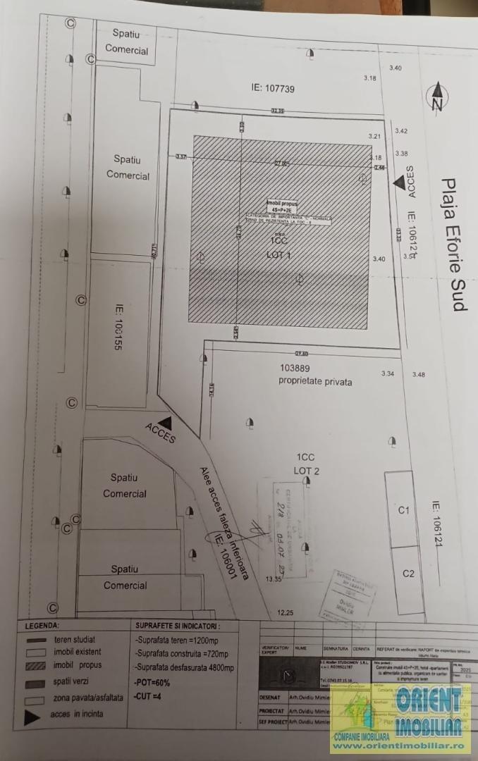 (cod7562) | EFORIE SUD, PRIMUL LA MARE, teren intravilan construibil, suprafata 1.200mp, deschidere 34mp. Terenul se prezinta in Panta si are vedere FRONTALA LA MARE. Detine certificat de URBANISM, 4S+P+2E pentru Hotel, apartament cu alimentatie publica, POT max 60%, CUT max 4. Zona este in centrul statiunii, cadastru si intabulare. PROPRIETAR persoana juridica.