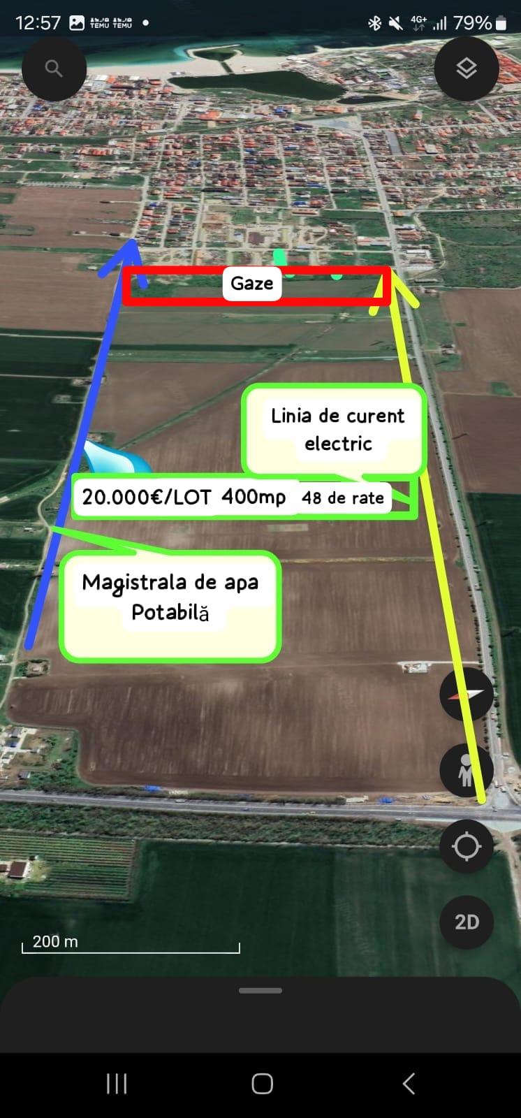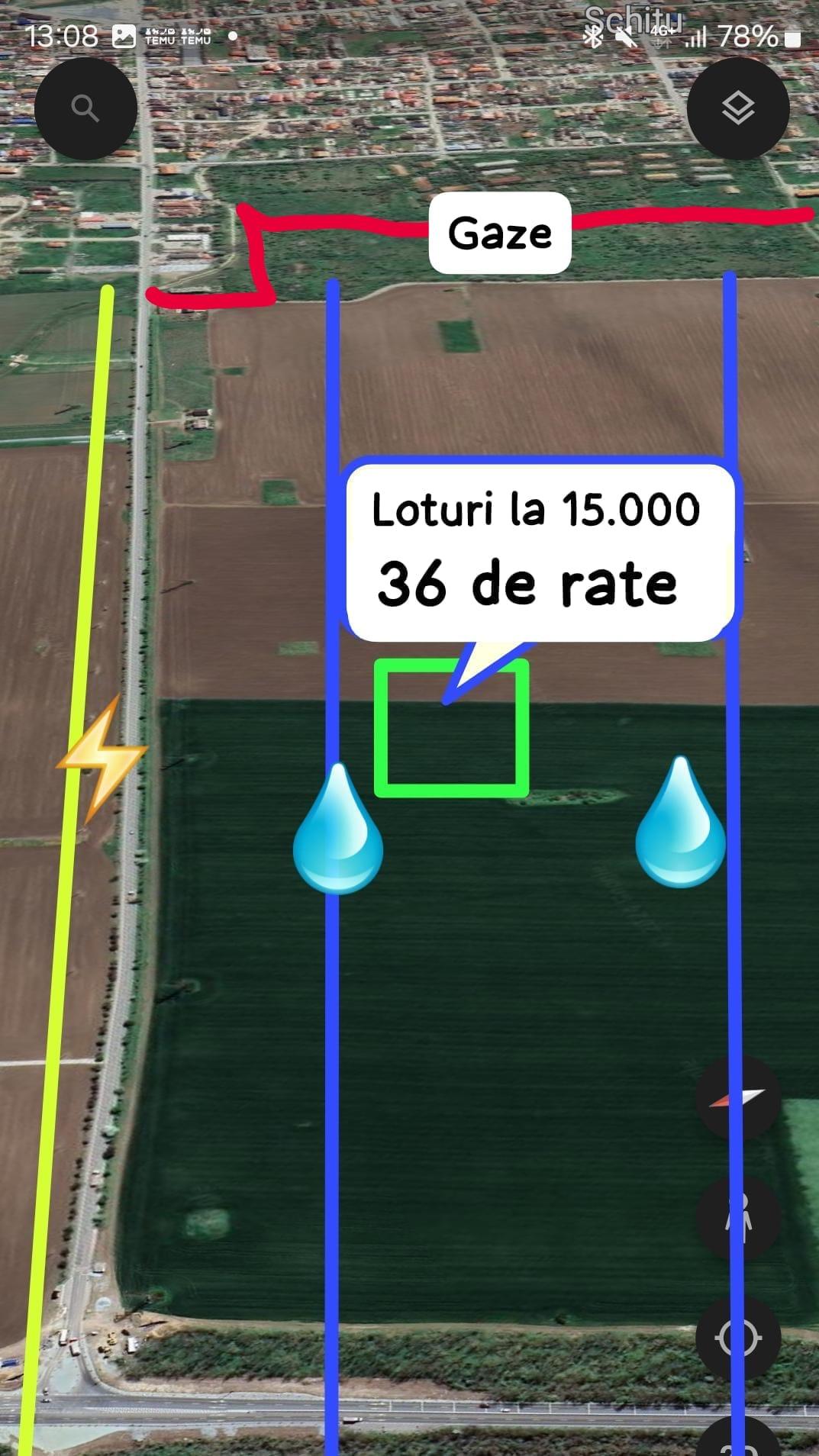 Loturi de 400 mp, deschidere 15 m.l. POT 40% , regim de construcție P . P+2+M , Utilitati : apa, gaze,electricitate , in apropiere. Ideale pentru investitie pe termen mediu!